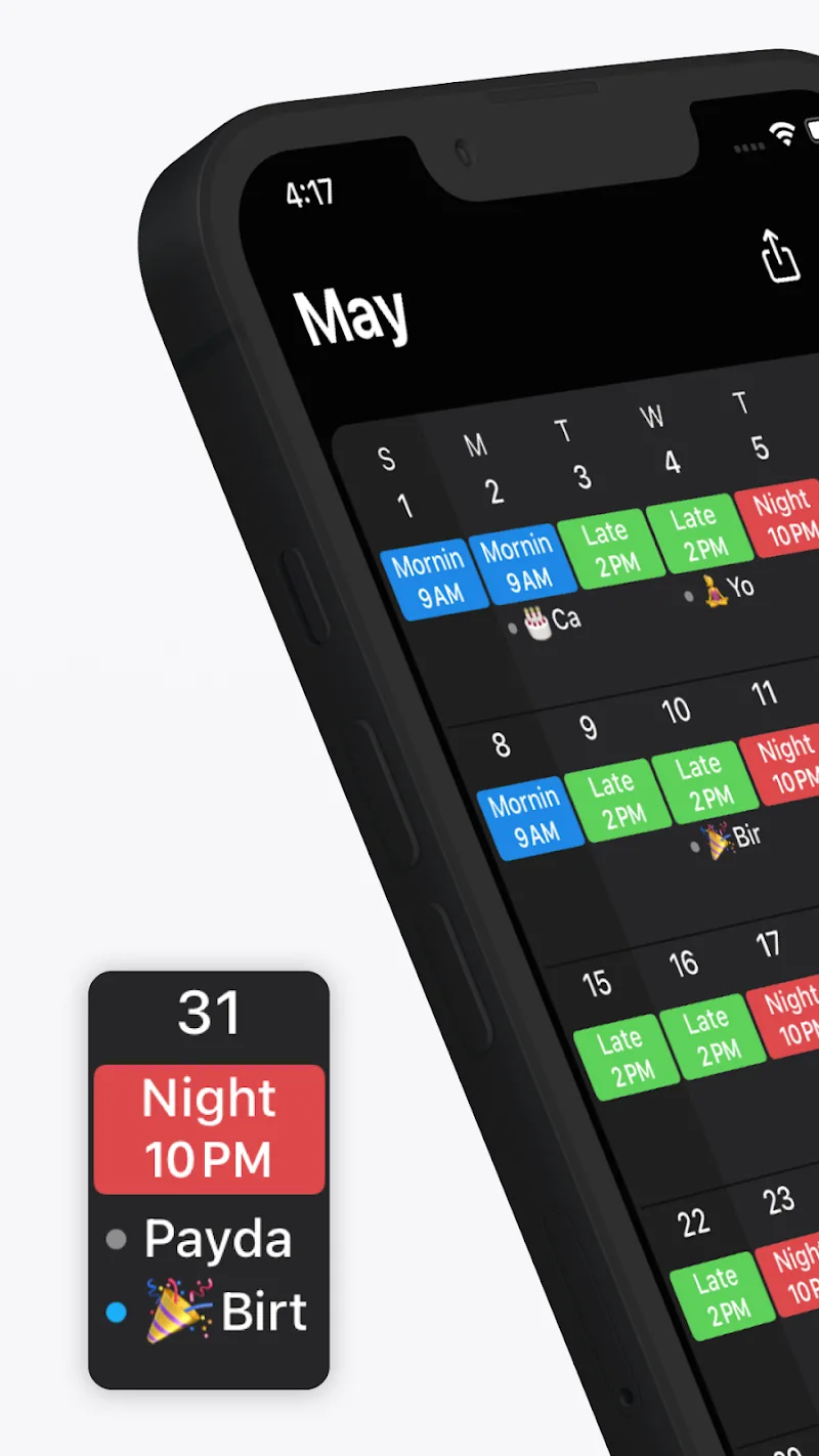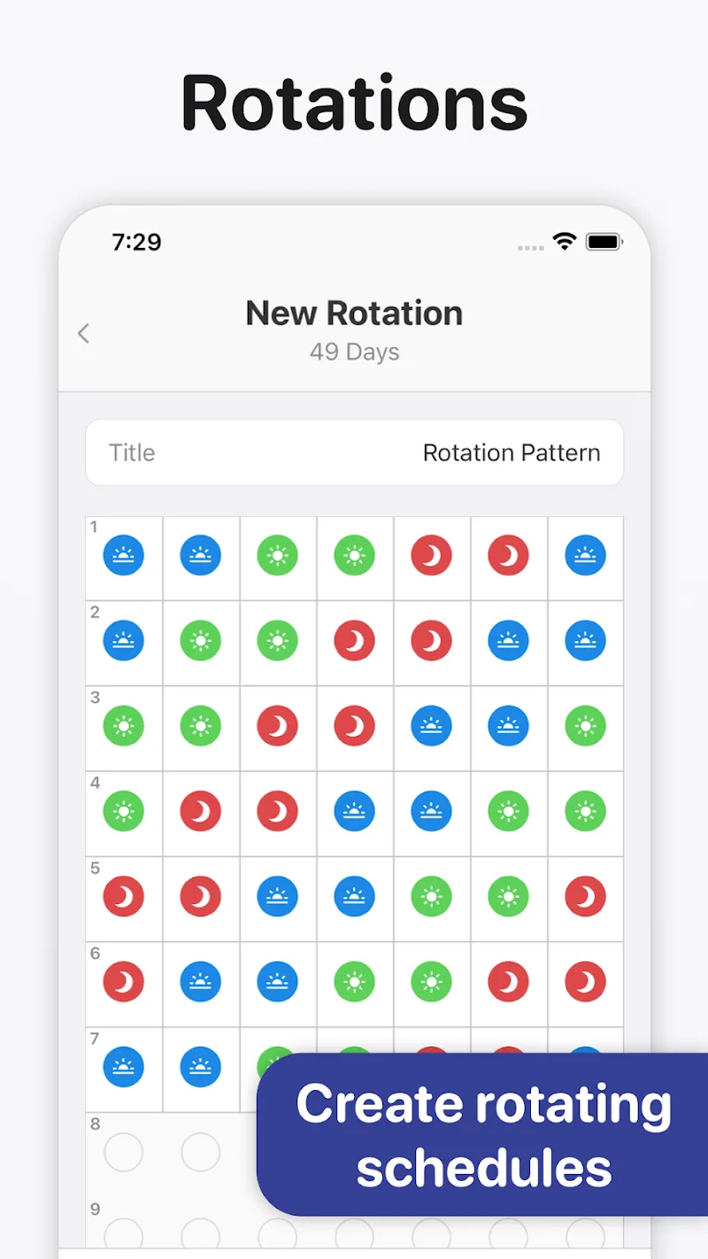 - Programación Personalizable: Muchas personas pueden agregar rápidamente múltiples turnos por día de muchas maneras diferentes. Específicamente, a menudo crearán estilos característicos con diferentes colores asignados a los iconos.