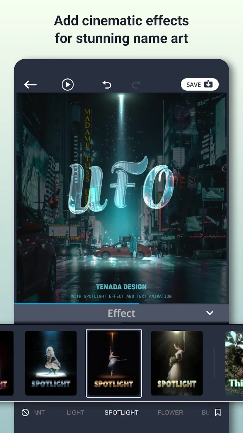 En esencia, TENADA permite animar texto en 3D completo con más de 300 predeterminados de movimiento de alta calidad, incluyendo acciones como volteos, giros y rebotes. Ajusta con precisión la velocidad, los ángulos de rotación y otros parámetros. Mezcla y combina secuencias de animación separadas de inicio, medio y final para efectos complejos. Dale a las palabras una vida suave y dramática.