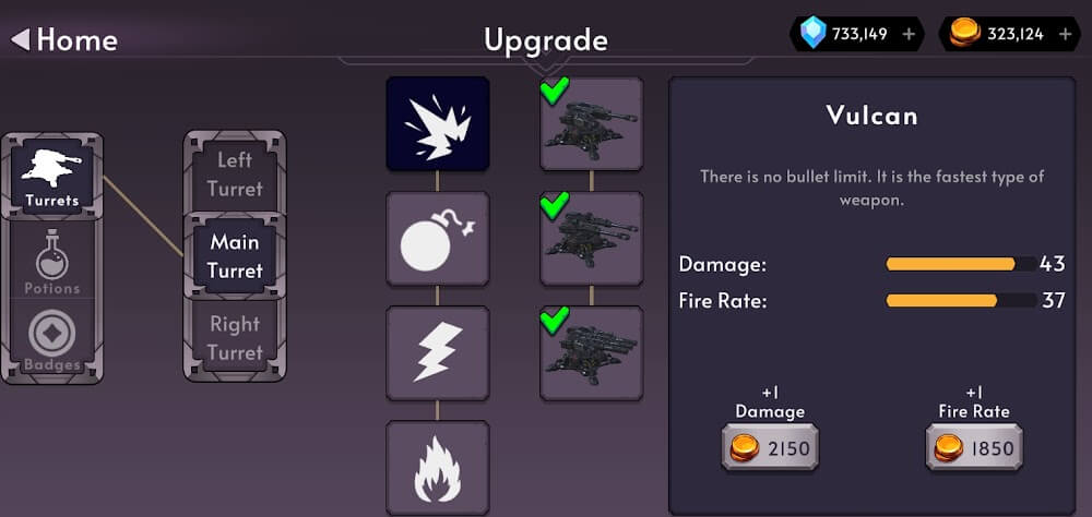 Tower Defender – Turret Gunner Mod APK tiene un juego infinito donde luchas hasta el final o completas los niveles con el armamento destructivo que encuentras a lo largo del juego o mientras subes de nivel. Eso te brinda más disfrute del que debería, y puedes progresar más con tus estrategias mientras sigues luchando y rechazando a los peligrosos enemigos con tu torreta.