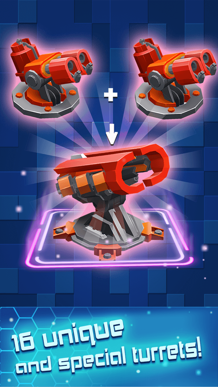 - Debes fusionar dos torretas similares para crear una significativa y alcanzar el objetivo final.