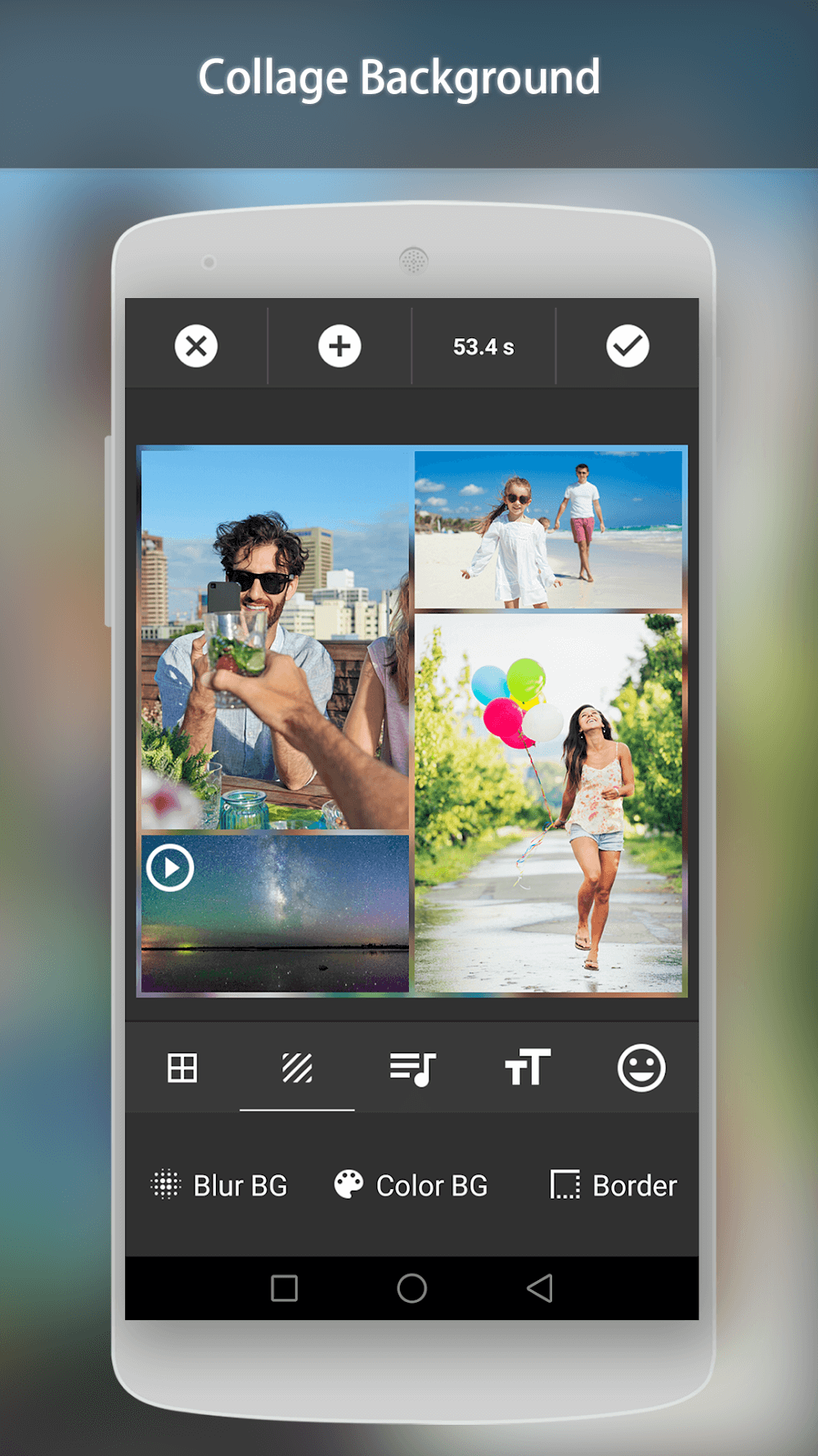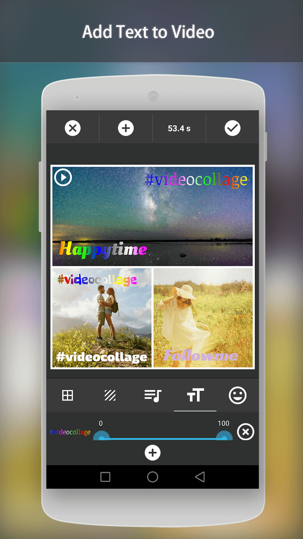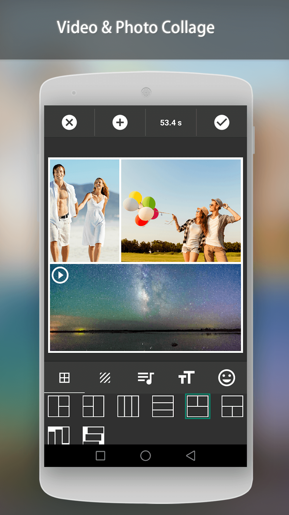 Video Collage Maker es una de las aplicaciones más potentes para combinar múltiples videos. Como resultado, has creado muchos contenidos de video nuevos y distintos. Los usuarios pueden editar videos y añadirles música para que se vean más vibrantes y atractivos. Además, la aplicación incluye miles de pegatinas lindas y humorísticas para que uses. Los usuarios pueden elegir qué pegatinas combinan mejor con el aspecto de sus videos. Además, eres libre de incluir tanto texto y marcos como quieras en tus videos.