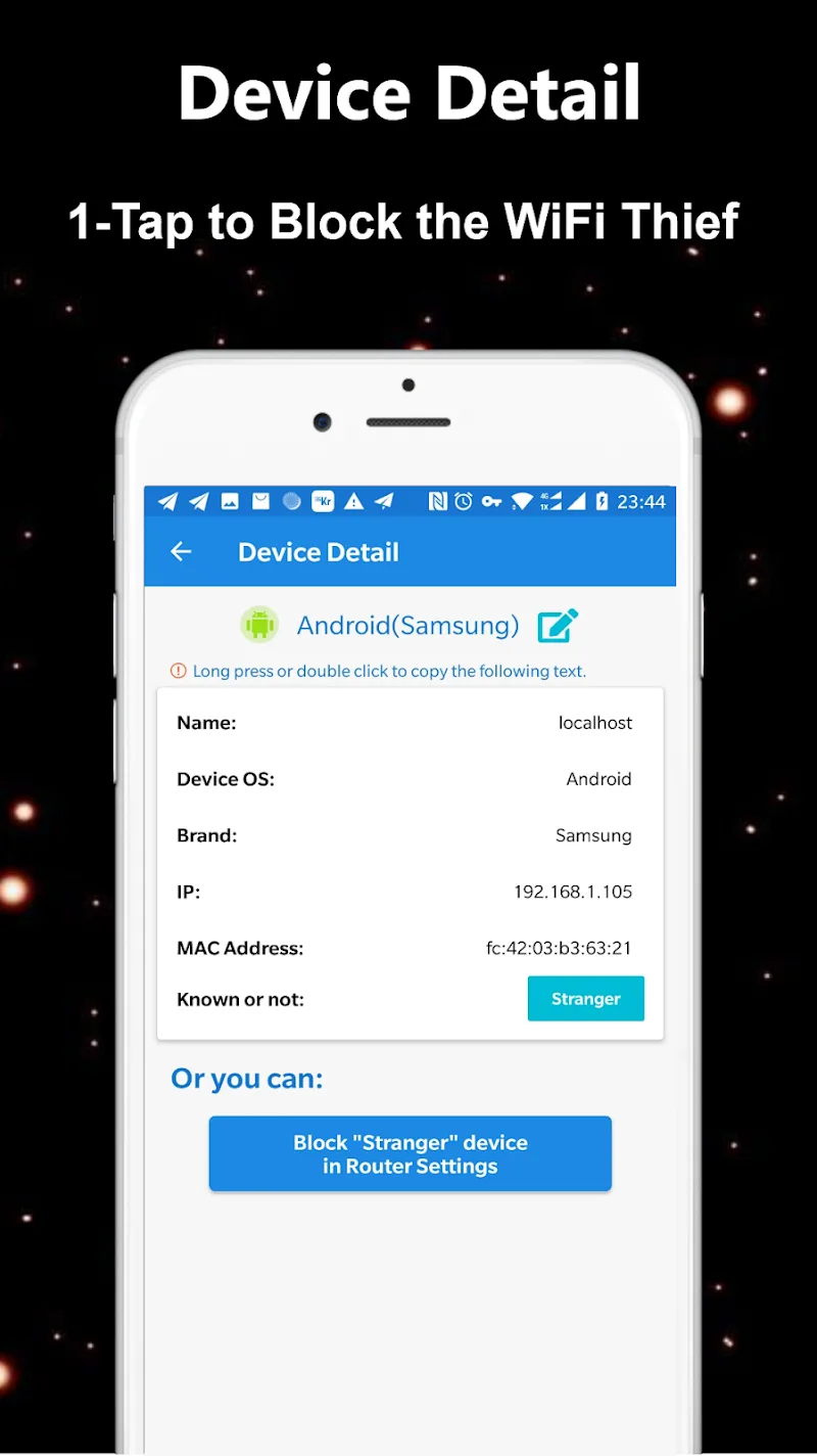 - Monitoreo de Dispositivos Simplificado: La aplicación siempre almacena una lista de dispositivos que se conectan regularmente al WiFi. A partir de ahí, los usuarios pueden reconocer dispositivos inesperados que no forman parte de su familia.