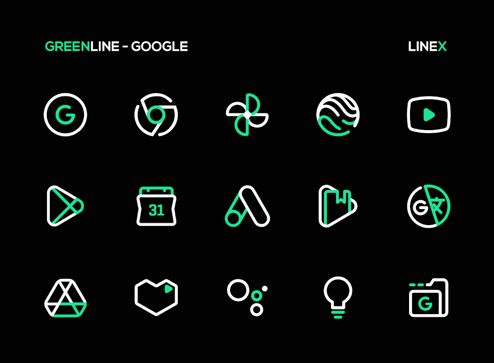 | Google Play Link | https://play.google.com/store/apps/details?id=com.jndapp.greenline.linex.iconpack |