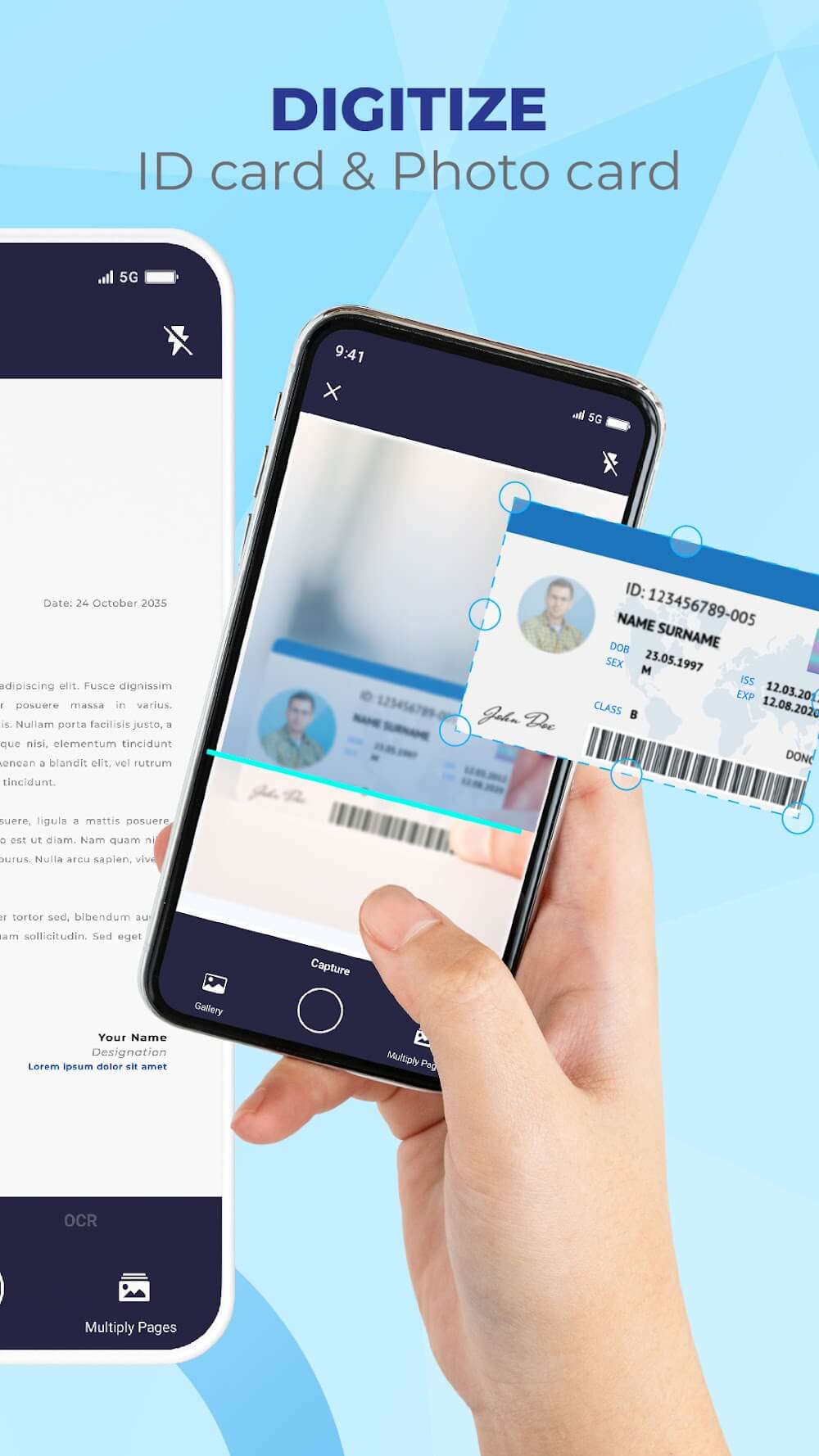 Setiap dokumen fisik dalam jangkauan Anda dapat dipindai dan dikonversi ke format digital menggunakan kamera ponsel cerdas Anda. Dengan memotong secara cerdas dan secara otomatis meningkatkan dokumen yang dipindai, aplikasi ini dapat menjamin bahwa teks dan gambarnya akan jernih dan beresolusi tinggi. Pemindaian juga dapat dilakukan dari sudut mana pun, karena aplikasi memiliki penyesuaian perspektif bawaan, memastikan konten pindaian Anda akan lurus dan tajam, seperti dokumen asli dengan kualitas terbaik.