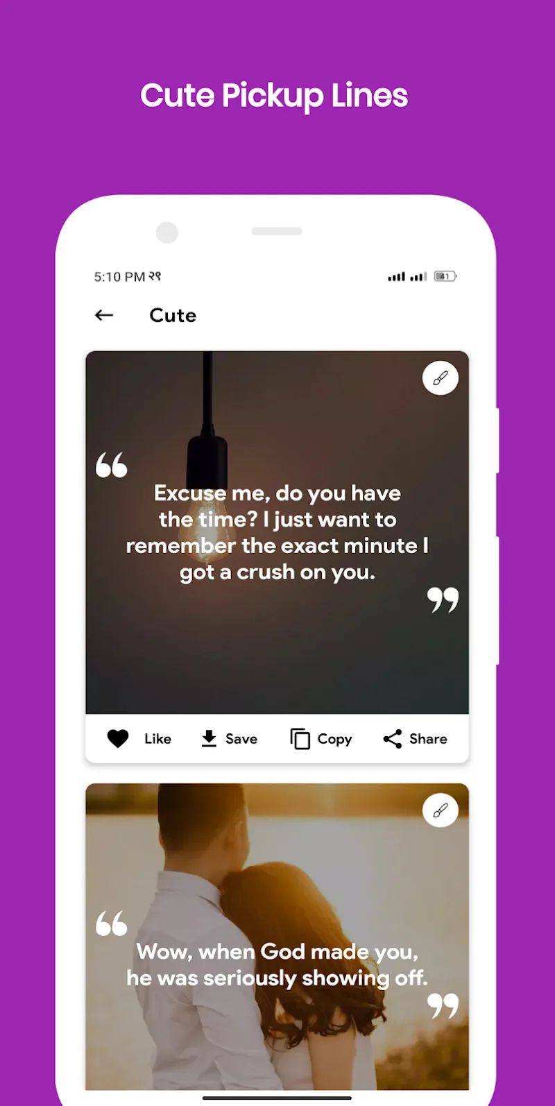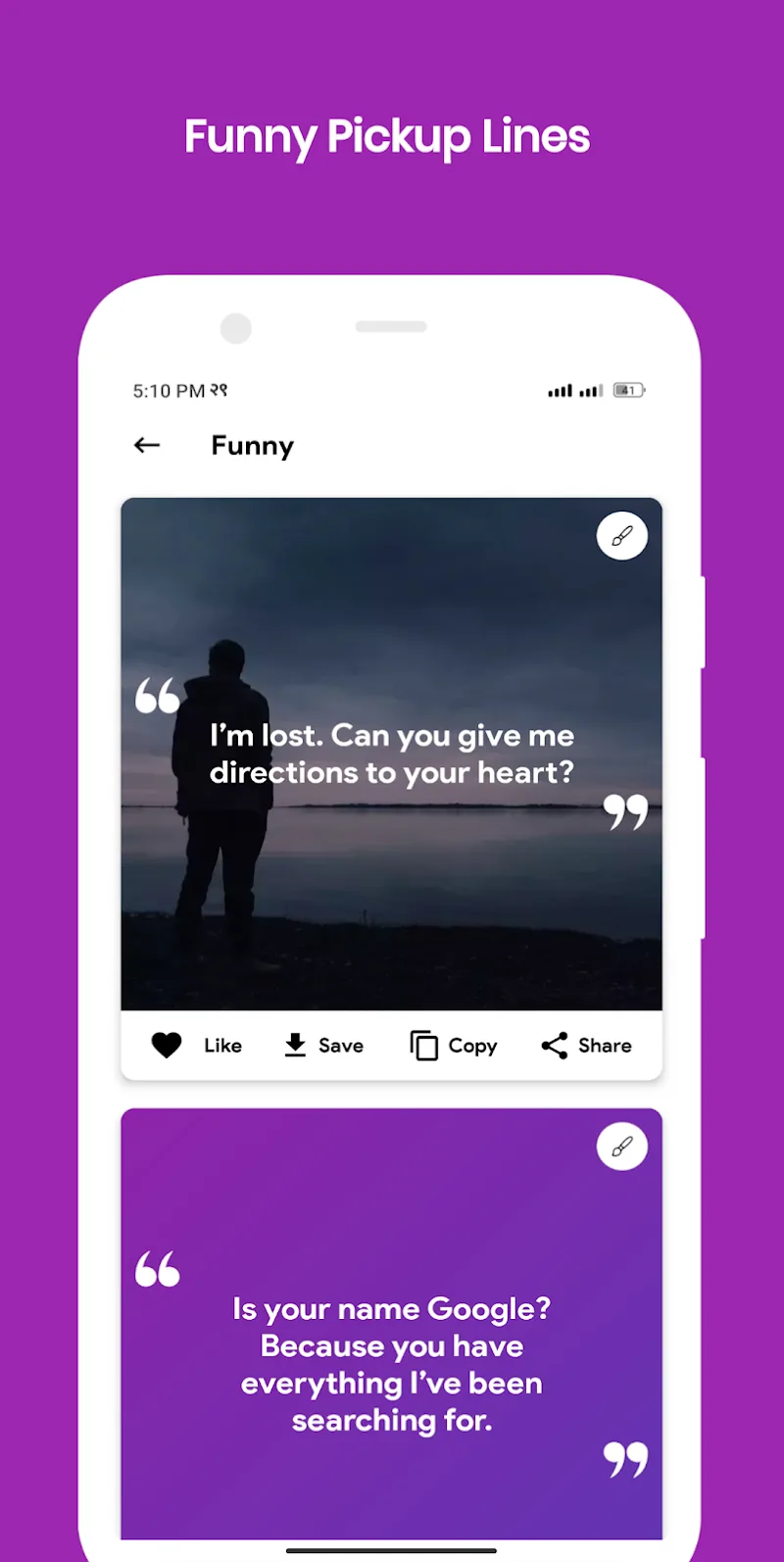 | Google Play Link | https://play.google.com/store/apps/details?id=com.kakideveloper.pickupline |