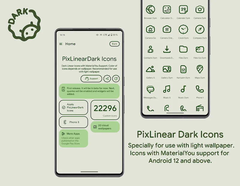 PixLinear Dark Icon Pack v1.5 Beta MOD APK (Full Version) Download