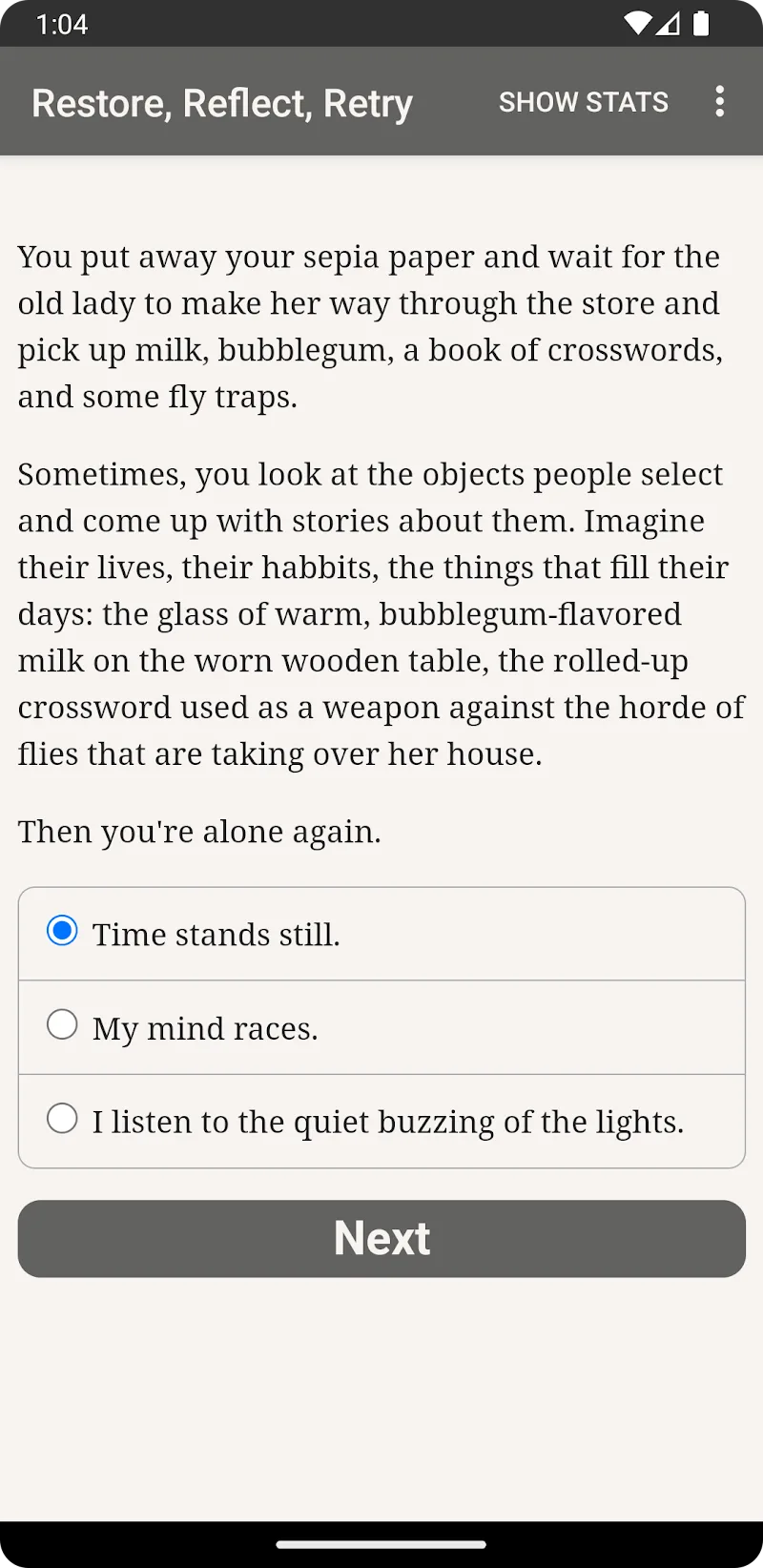 Restore, Reflect, Retry v1.0.9 MOD APK (No Ads, Unlocked Stories)
