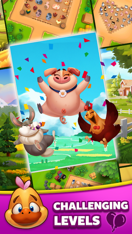 Гениальность Animal Farm Jam заключается в её остроумном слиянии парковки животных и головоломок с пробками. Но погодите, это ещё не всё! Вы не просто выводите животных из тесных ситуаций; вы играете в сваху. Курочки, овечки, коровы — у каждой есть свой красочный партнёр, ждущий трогательного воссоединения. Забудьте о свайпах в приложениях для знакомств; здесь всё сводится к тому, чтобы свайпнуть этих фермерских созданий к их идеальным парам!