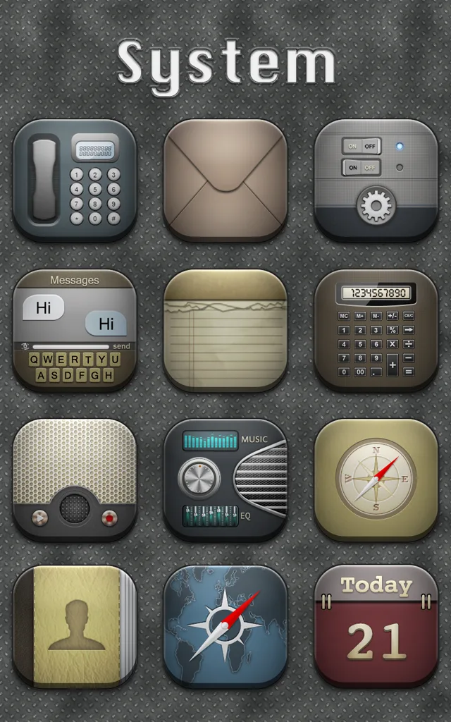 Arc предоставляет пользователям коллекцию иконок в классическом стиле, сочетающуюся со старинными материалами с множеством царапин. Каждая иконка представляет собой креативный и чрезвычайно стильный дизайн. Приложение также делится многими другими коллекциями в том же стиле, включая обои, виджеты-панели и папки с погодой.