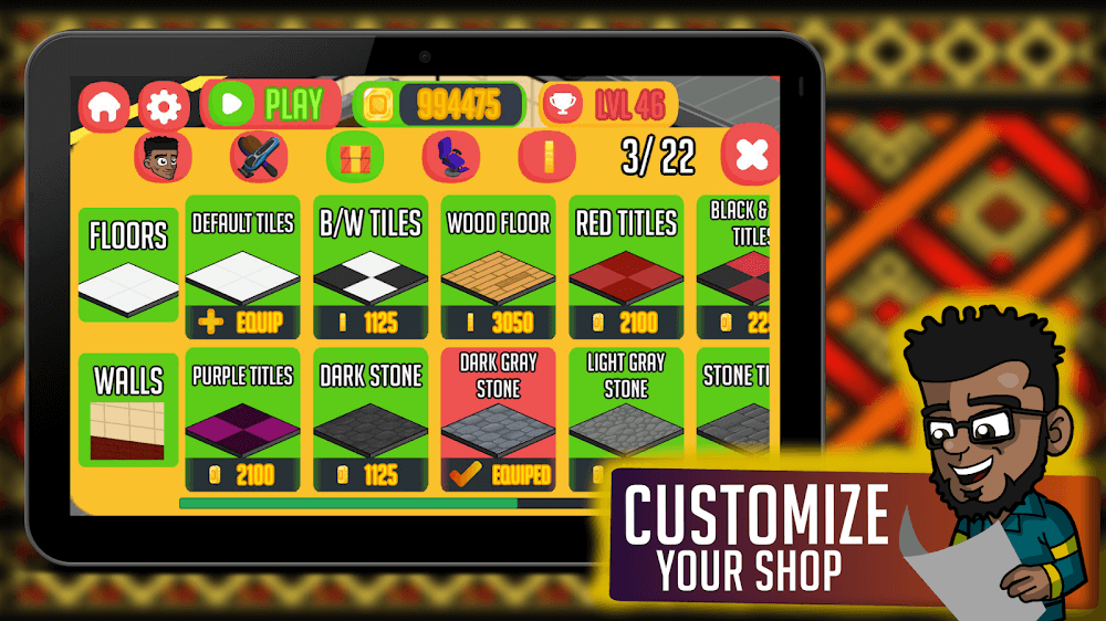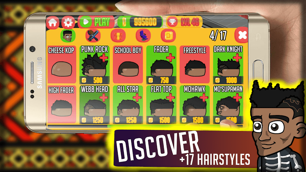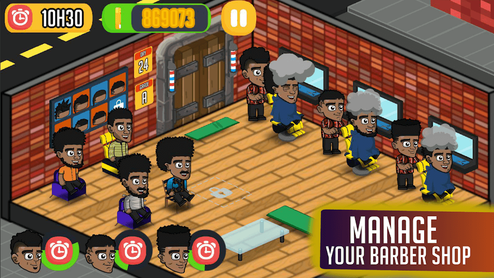 Панк-рок, ёжик, ирокез, высокий фейд и множество других причёсок можно опробовать в игровом салоне. Прежде чем принимать клиентов, вам нужно заработать достаточно денег, чтобы купить все доступные стили. Однако вы можете освежить свою парикмахерскую, изменив цвет стен или уложив новый кирпичный фон. Если вы хотите улучшить свои услуги, стоит подумать о замене некоторых инструментов и оборудования в салоне. Клиенты останутся довольны качеством вашей работы и уровнем сервиса.
