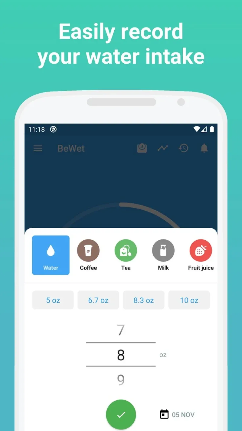 - Разные напитки: Приложение помогает вам отслеживать воду, чай и сок в зависимости от ваших потребностей и предпочтений. В то же время это также увеличивает количество необходимых добавок для функций организма.