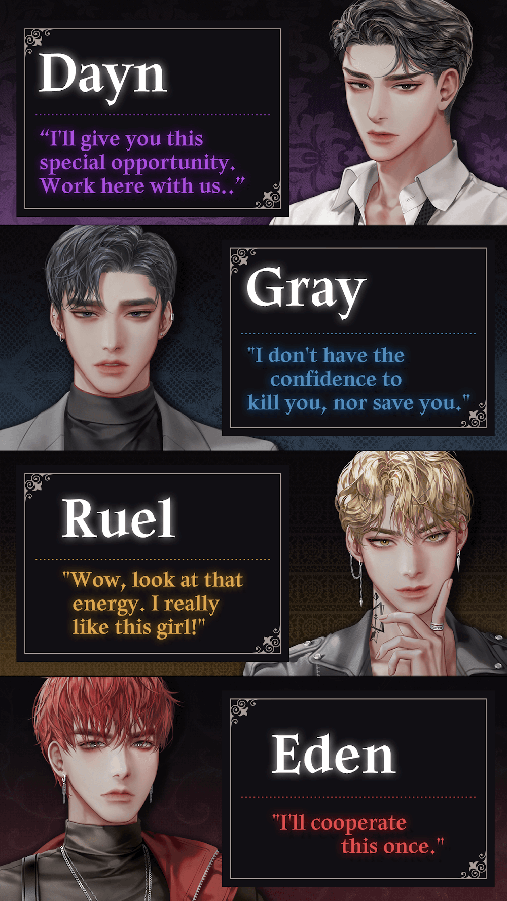 | Ссылка на Google Play | https://play.google.com/store/apps/details?id=com.storytaco.bloodkiss.dangerous.ikemen.otome.story |