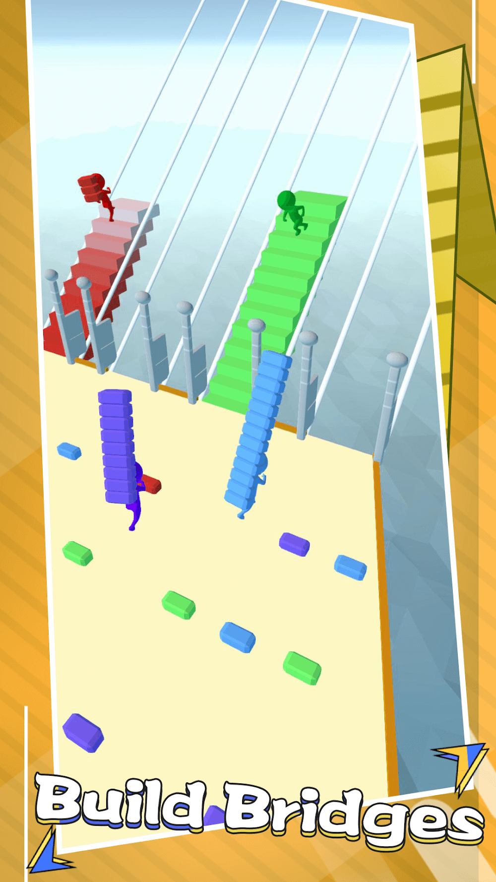 Bridge Run IO Mod APK — это гостеприимная среда, которая поощряет творческое мышление, позволяя игрокам добывать кирпичи и строить собственный путь к победе, будь то мосты или форты. В игре представлена масса нового контента, который регулярно добавляется, и всё это либо очаровательно, либо гениально, чтобы вы и ваши друзья могли наслаждаться окружением.