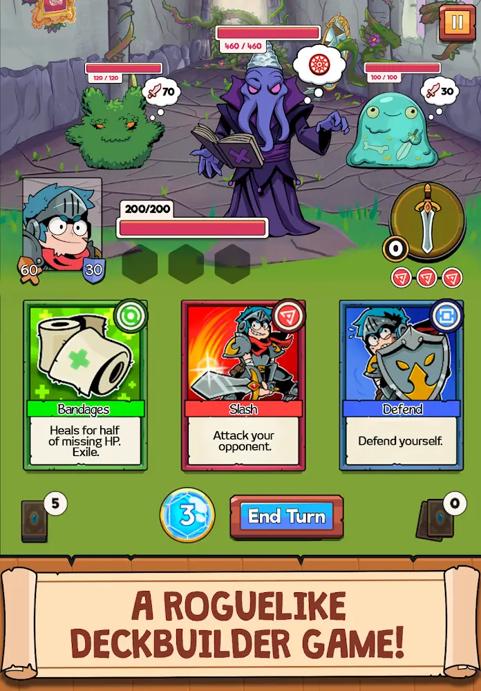 Суть создания стратегии заключается не только в том, как вы найдёте способ быстро уничтожить врага, но и в том, как вы комбинируете карты. Здесь будет шкала энергии, определяющая количество карт, которые вы можете использовать, и если активируются одинаковые карты, она подсветит ячейку в правом верхнем углу экрана. Когда все пустые ячейки будут подсвечены, эффективность этого типа увеличится — например, если вы создадите цепочку из 3 атакующих карт, в конце выбора количество атак возрастёт в 5 раз. Поэтому со временем количество ваших карт будет увеличиваться, и множество необычных стратегий будет быстро создаваться.