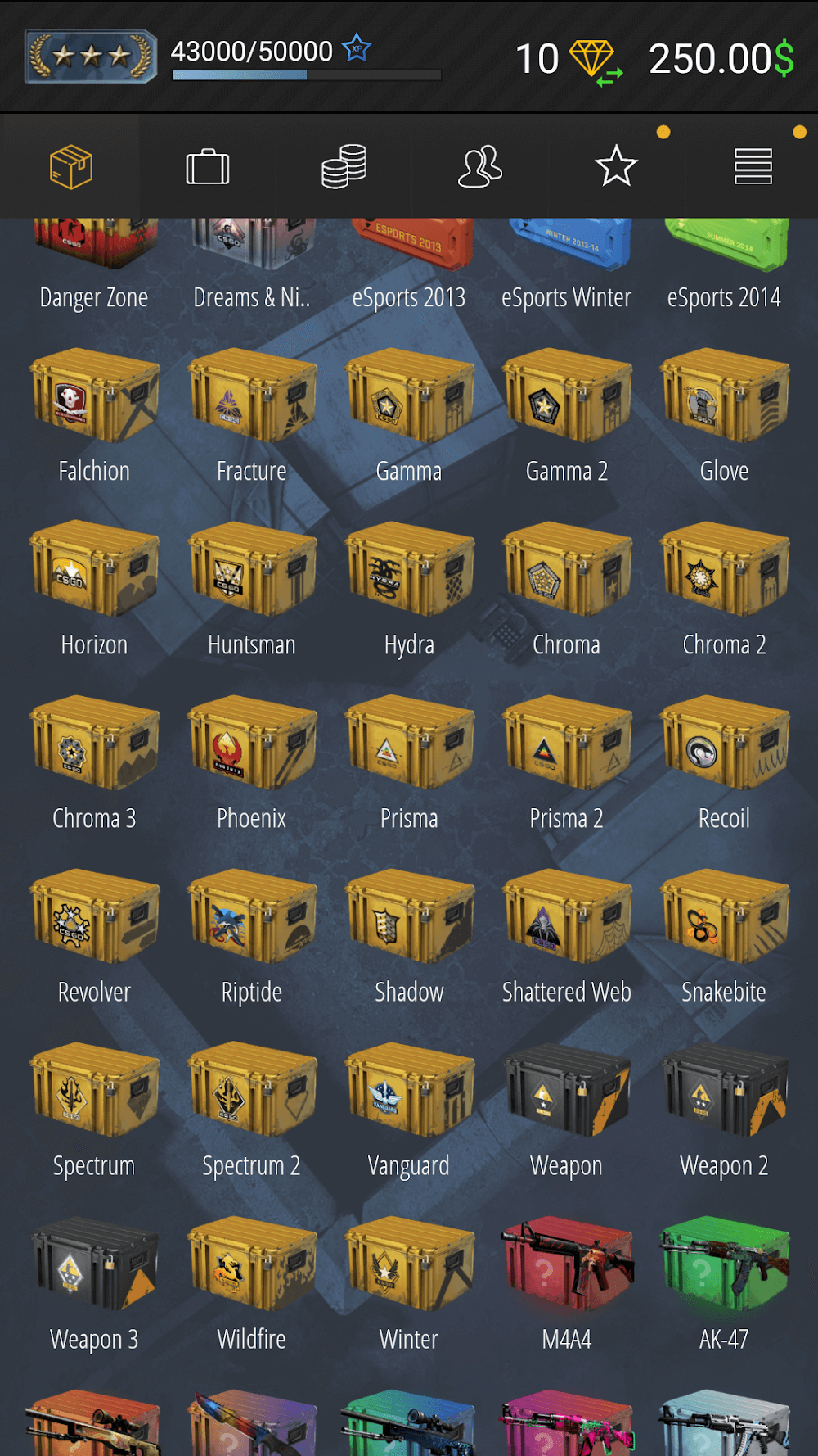 Чтобы обмениваться на получение специальных наград через открытие кейсов в CSGO, игрокам придётся тратить деньги на покупку сундуков и ключей. И сумма, которую каждый игрок должен потратить, чтобы владеть этими предметами, немаленькая, и не каждый игрок готов заплатить эту плату. Но вместо того, чтобы терять много денег, это приложение станет отличным решением для вас, поскольку сундуки, которые вы можете открывать, будут совершенно бесплатными. Когда вы впервые зайдёте в игру, вы получите небольшую сумму денег для покупки коробок и ключей. В то же время игроки, которые получили множество видов редкого снаряжения в процессе игры, могут использовать множество других способов, чтобы заработать ещё больше денег.