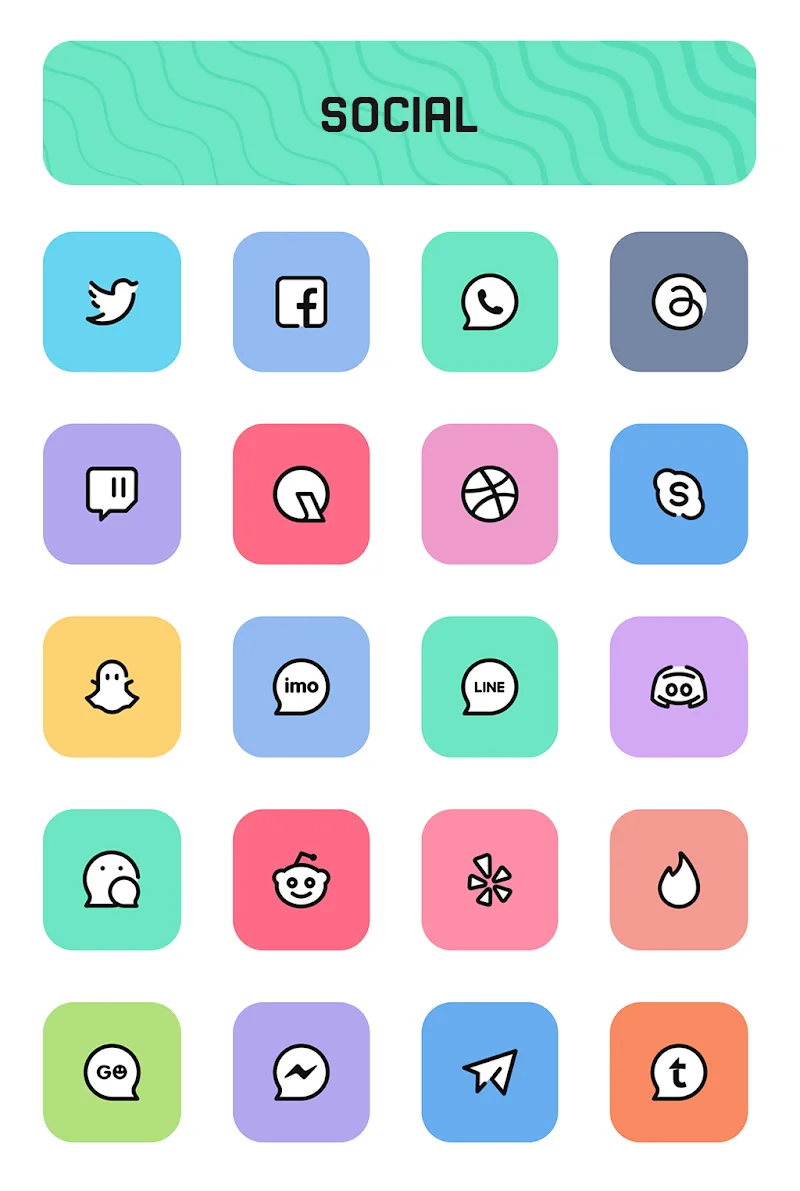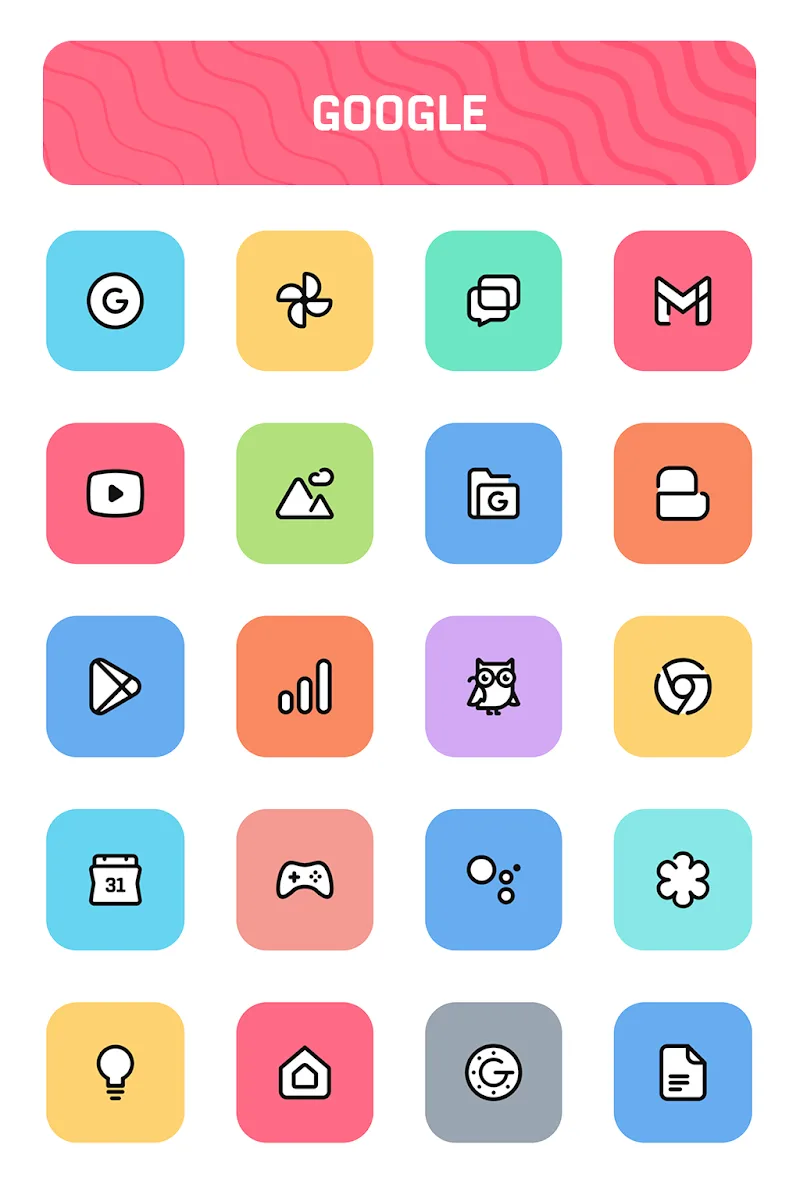 Шаблоны иконок, разработанные приложением, имеют очаровательный пастельный цветовой слой. Пользователи могут выполнить некоторые настройки, связанные с выбранными шаблонами иконок. Появится несколько папок с иконками с четким разделением по содержанию и теме каждого шаблона.