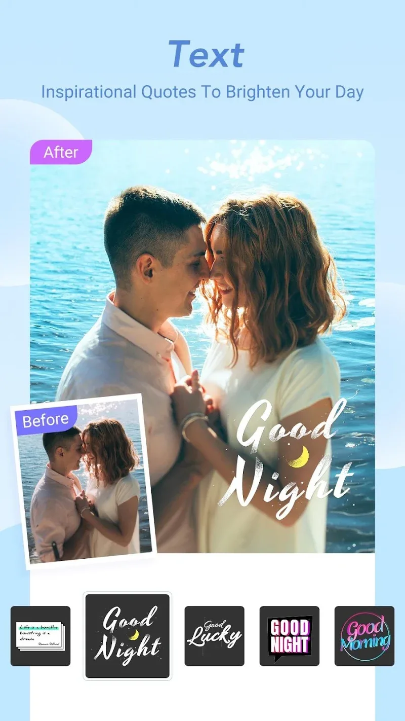Идите дальше с кистями, вставкой текста, эффектами искажения и другими инструментами для продвинутого улучшения. Создавайте совершенно уникальные изображения с помощью творческих опций редактирования, которые могут соперничать с отдельными приложениями для обработки.