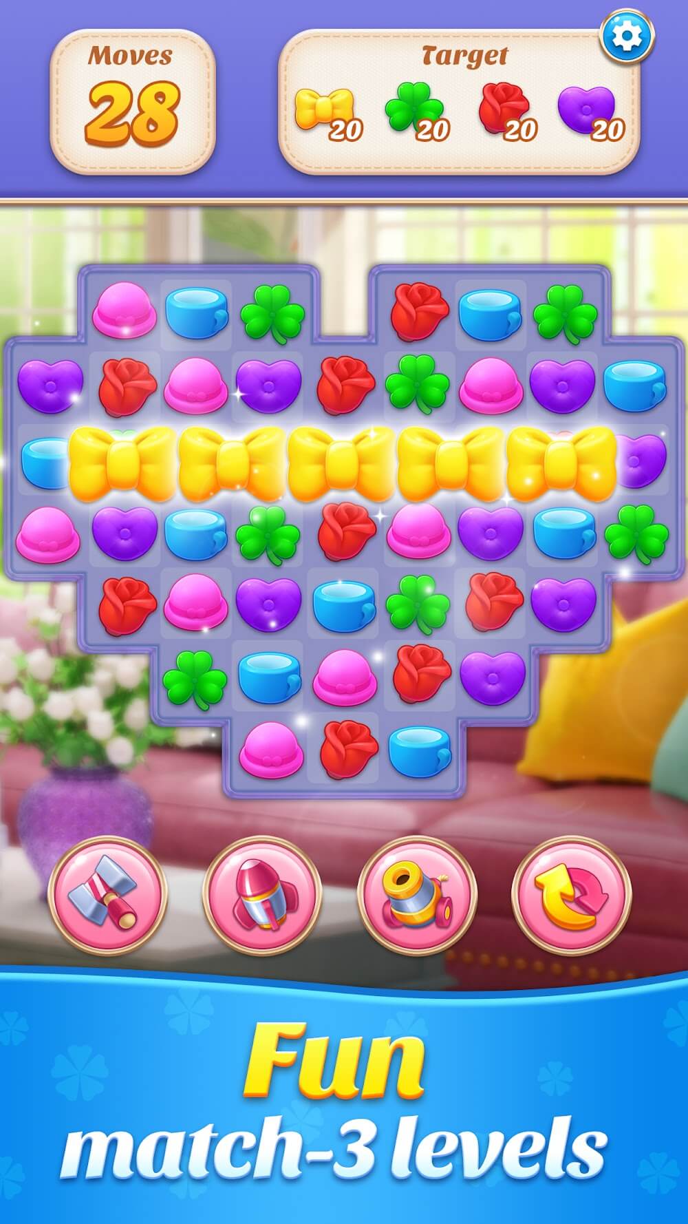 Чтобы выполнять настройки беспрепятственно, вам нужно решать различные головоломки. Это разнообразие часто представлено игровым процессом «три в ряд» с разблокировкой монет.