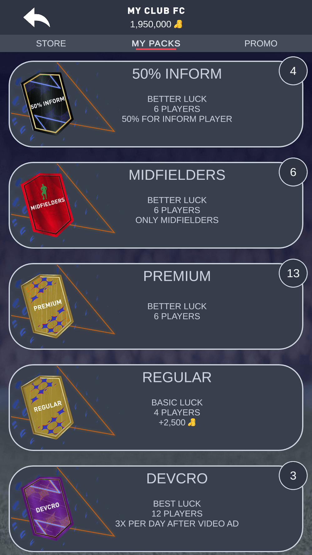 DEVCRO 23 – Draft, Packs! предлагает игрокам более захватывающий футбольный опыт. Футбольные наборы разработаны по уровням, чтобы привлечь больше участников. Для повышения привлекательности игра открывает серию мини-игр. Игроки будут по очереди открывать наборы и формировать свои команды.