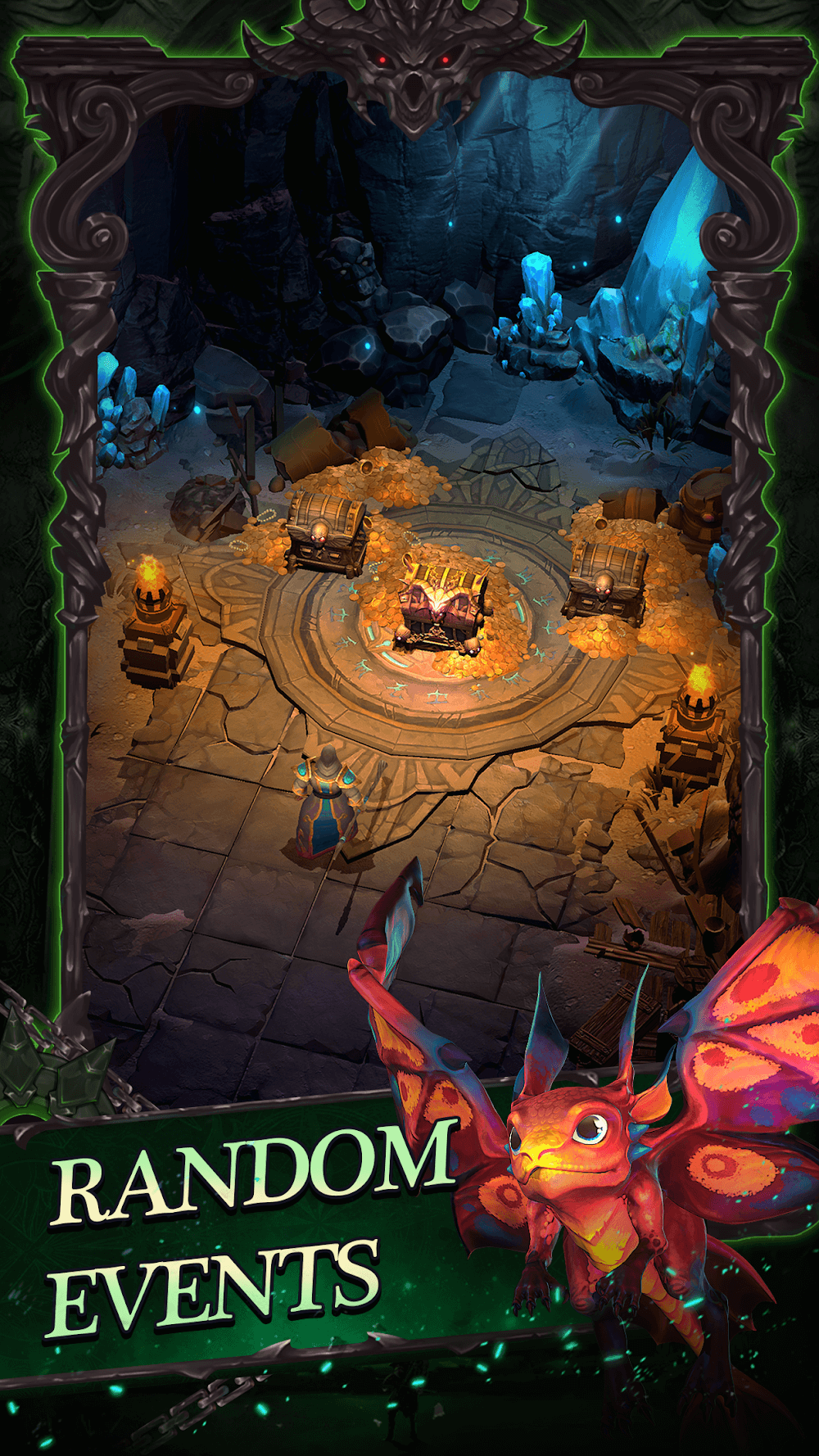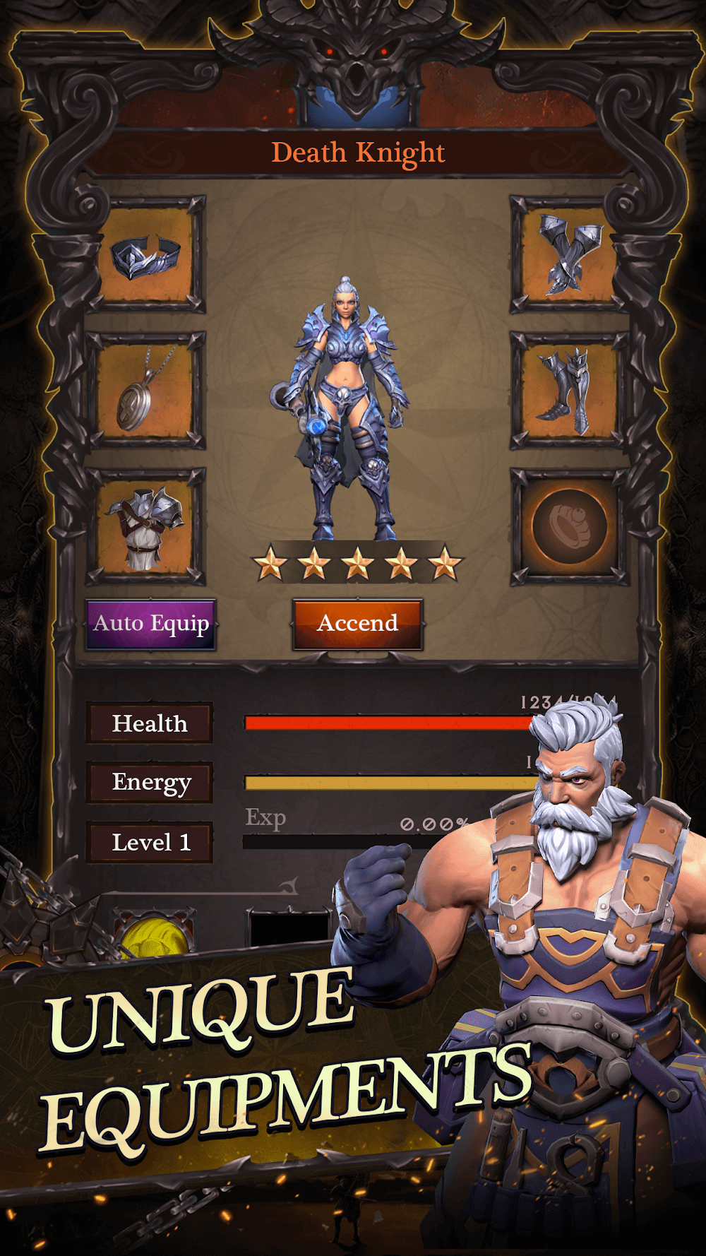Хотя герои будут сражаться автоматически, вы также можете помочь им, используя дополнительные навыки каждого персонажа. Вам нужно перетащить навык на врага и подождать некоторое время, пока навык восстановит достаточно маны, прежде чем вы сможете использовать его снова. Использование навыков расходует ману персонажа, которая автоматически восполняется во время боя, максимум до 10 очков. После завершения каждого боя вы будете накапливать очки опыта и быстро повышать уровень. Кроме того, по пути вы также будете находить волшебные сундуки и собирать ценное снаряжение, такое как изысканный шлем или доспехи.