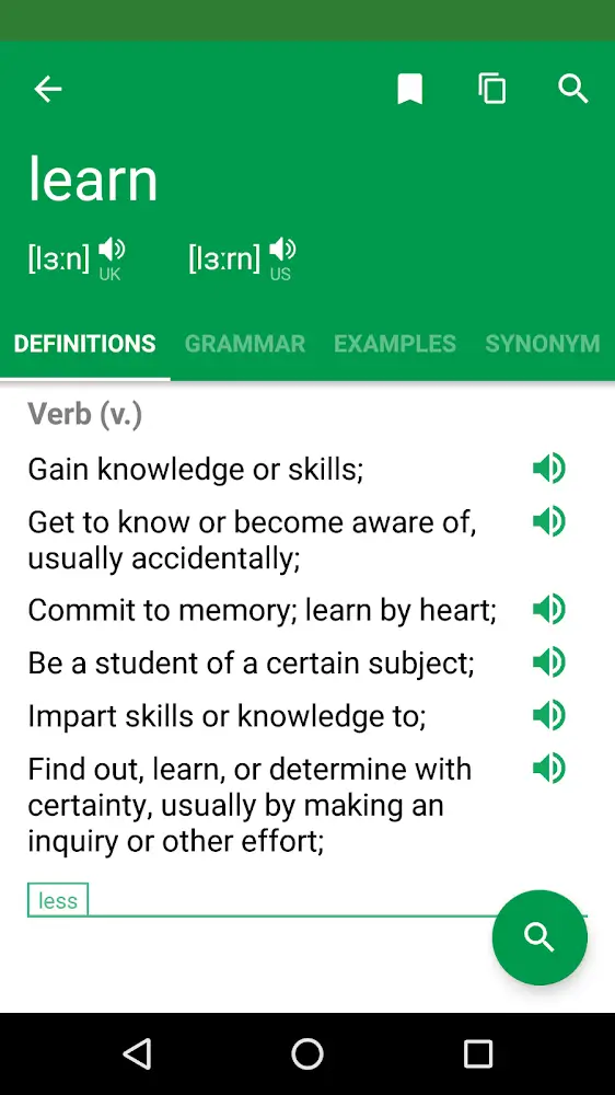 Если вам нужно приложение-словарь, которое поможет вам лучше искать и изучать иностранный язык каждый день, то Erudite Dictionary — неплохой выбор. В частности, вы можете свободно исследовать различные значения, связанные с понятием, вместе с нами. Но это не всё: используя это приложение, вы не сможете пропустить умную и быструю функцию поиска — от грамматики до лексики. Теперь вы также можете открыть для себя множество различных синонимов и антонимов в словарях.