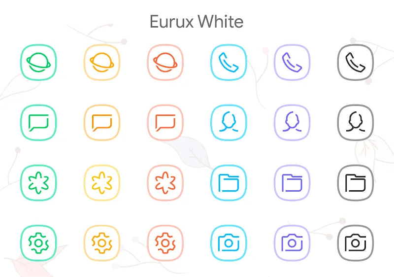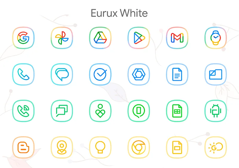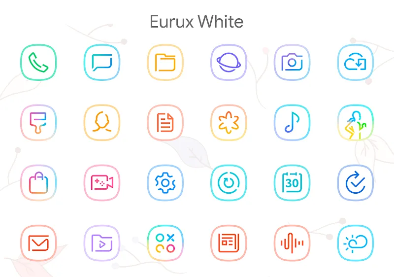 Элегантный и минималистичный стиль будет применён к дизайну иконок в Eurux White – Icon Pack. Не только иконки, но и коллекция обоев приложения делает акцент на свежести. Каждая иконка представляет собой идеальное сочетание красочных штрихов на белом фоне.