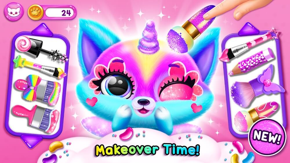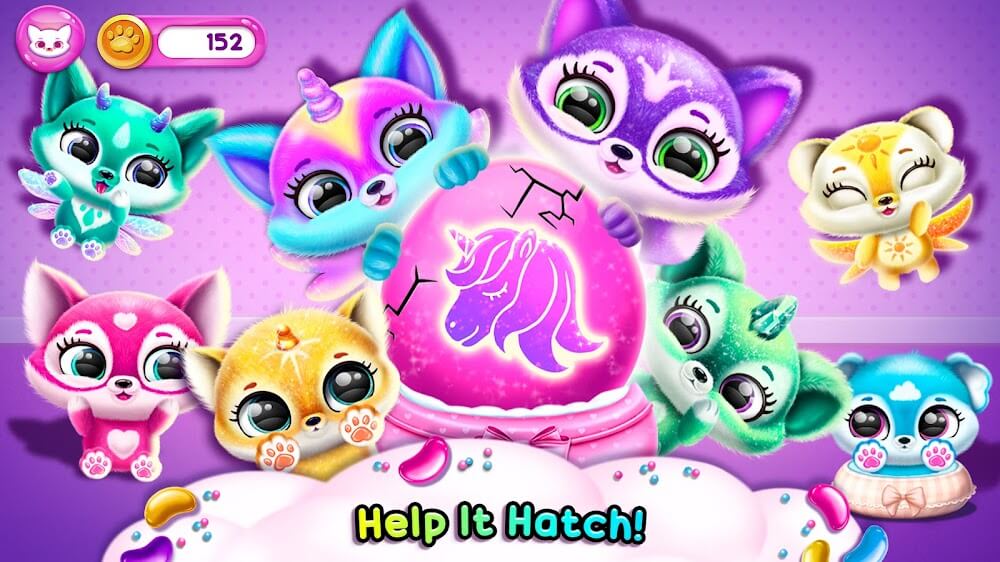 Fluvsies Mod APK — это анимационная игра, которая переносит вас в очаровательный мир, полный милых существ. Этот красочный протагонист включает в себя симпатичных зверьков различных цветов, пока оппортунисты крадут редкие яйца Fluvsies — семицветный котёнок, одетый как единорог, сбежал из неволи. Вы можете начать своё приключение по спасению страны после достижения своей формы счастливого кота. Вы отвечаете за уход за животными, как за младенцами, обеспечивая их сытость и комфорт. Вам придётся регулярно играть с ними, включая кормление, игры и множество других весёлых занятий.