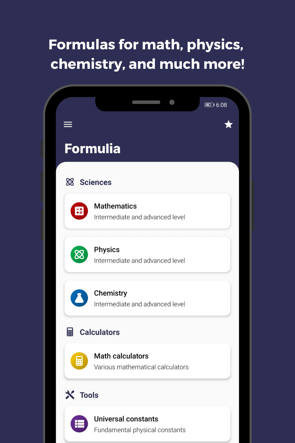 Formulia — это приложение, которое предоставляет формулы для вычислений и обучения пользователя. Мы похожи на справочник, который фиксирует все знания, которые пользователь может обновлять. Отличные функции позволяют заполнить пробелы в каждом элементе контента. Кроме того, вы можете настроить более удобное рабочее пространство. Когда вы предоставите системе вескую причину, будут внесены изменения в формулы и вычисления.