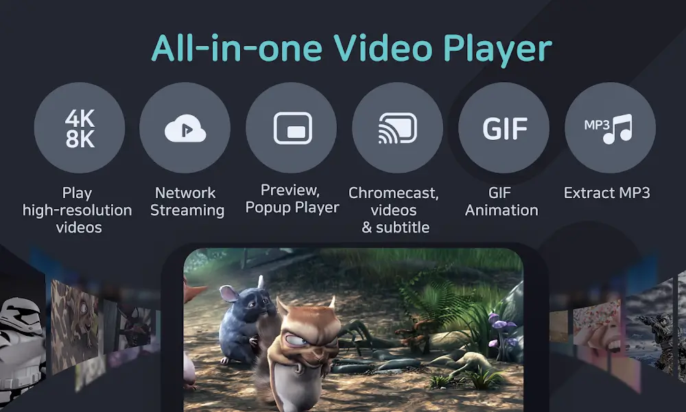 - Различные видеоплееры для полноэкранного режима, режима предпросмотра, мини, плавающего и фонового режимов воспроизведения.