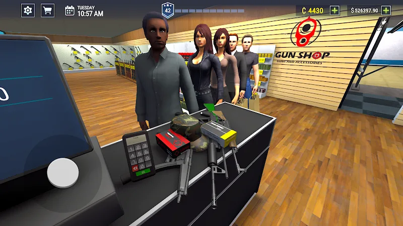- Высококачественные 3D-модели: Вы будете продавать оружие — от пистолетов и винтовок до других специализированных видов вооружения — с высокой детализацией и реализмом. Чёткость, с которой воспроизведена каждая модель оружия, усиливает впечатления от игры.