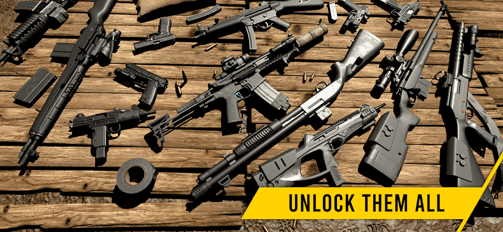 На протяжении всей игры игрокам предстоит сражаться с помощью 3D-оружия, которое не только захватывает дух и реалистично, но и доставляет удовольствие в использовании, точно уничтожая цели. Это включает применение различного вооружения для определённых целей или ситуаций. Лучшее в игре — это разнообразие оружия, с различными типами, от пистолетов, ПП, автоматов, дробовиков и других, чтобы игроки могли проверить их аутентичность и функционал. Таким образом, они узнают больше о конкретных видах огнестрельного оружия, тестируя их огневую мощь.