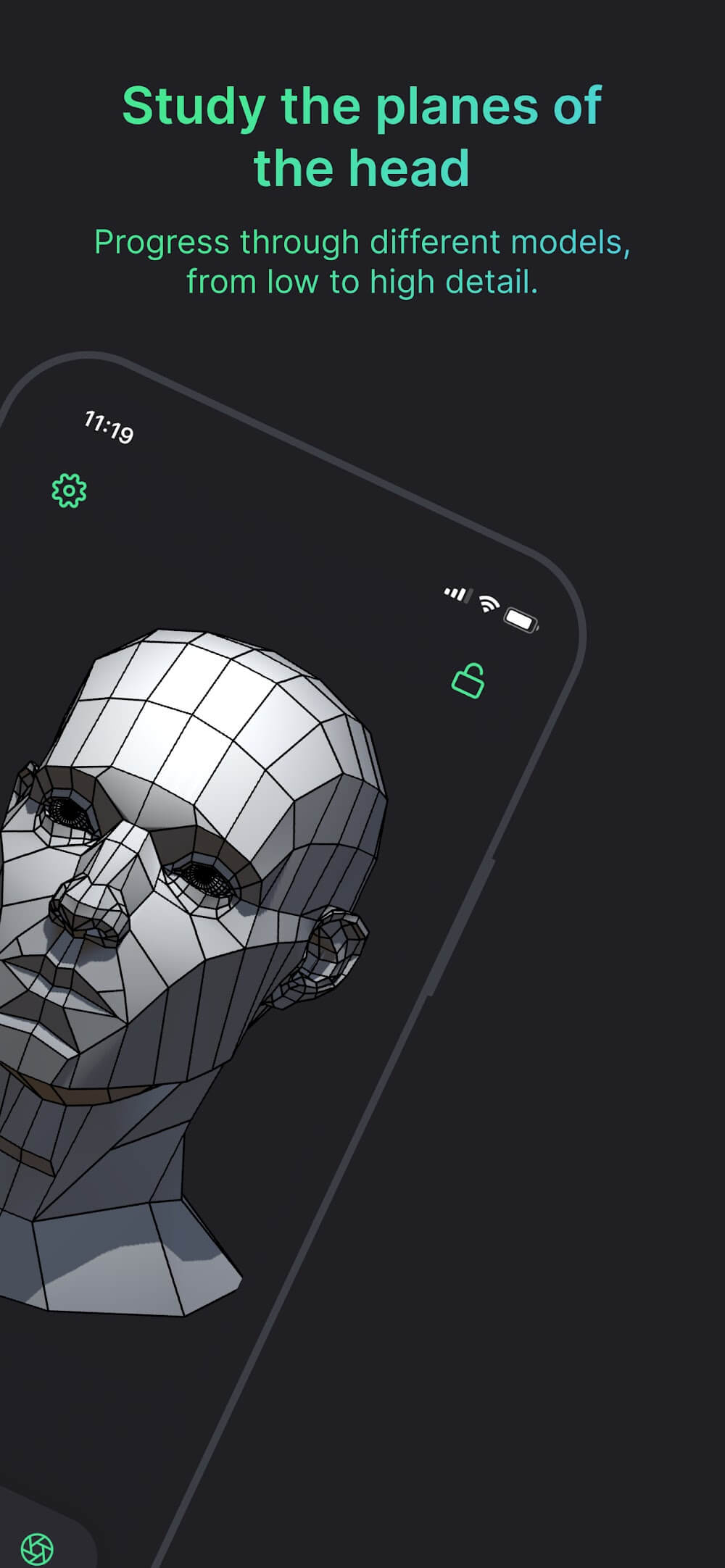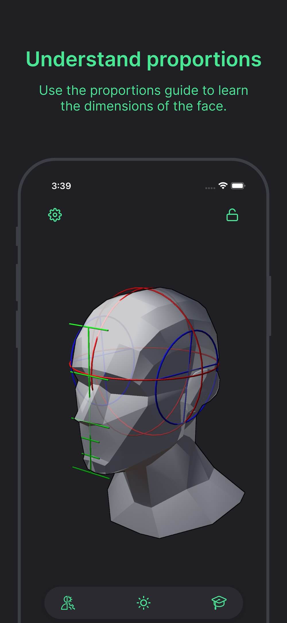 Head Model Studio позволяет настроить процесс под себя. Функция контурных линий приложения — как наставник в кармане, подчёркивающий плоскости для более лёгкого понимания. Когда вы будете готовы расправить крылья, просто отключите её, чтобы практиковаться в более реалистичной обстановке. Хотите поэкспериментировать с текстурой? Измените параметр глянцевитости для уникального опыта рендеринга материалов. Это всё равно что держать в руках полностью оборудованную художественную студию.