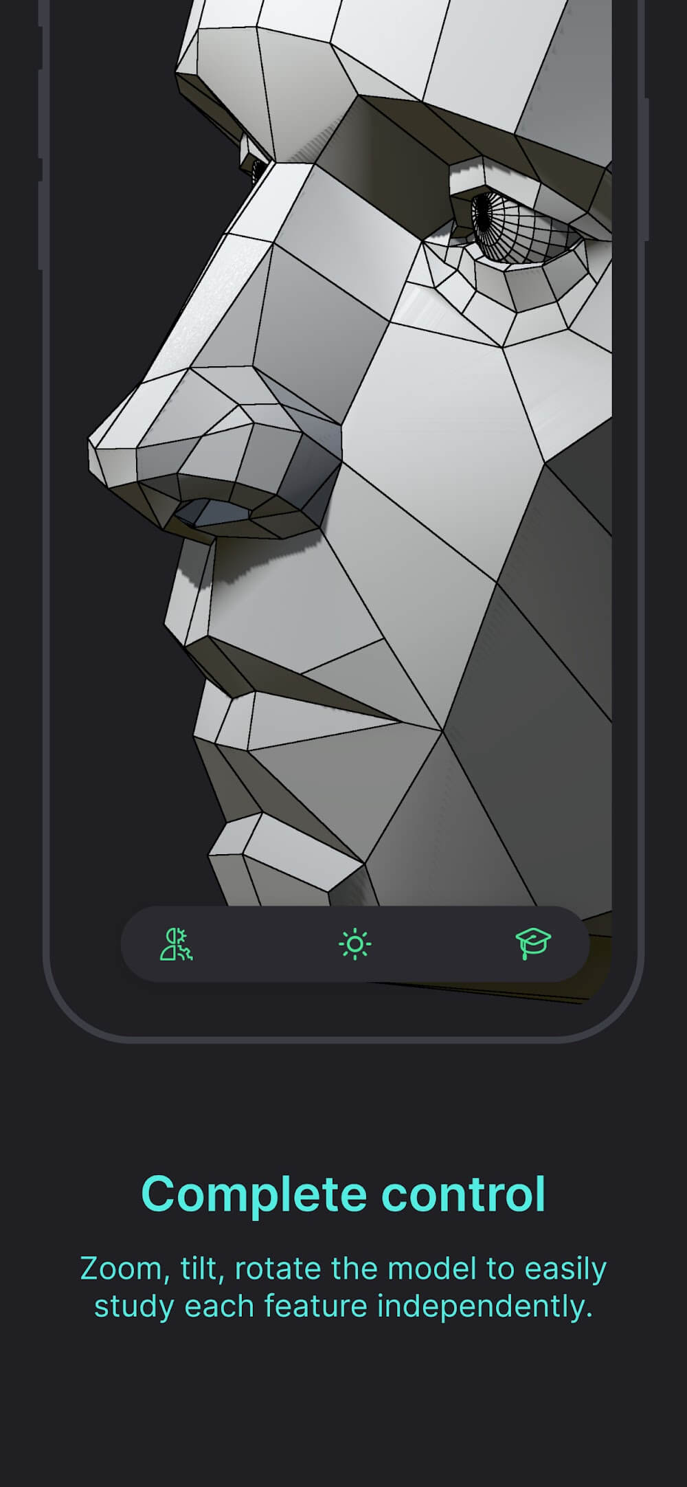 Приготовьтесь к захватывающему путешествию художественных открытий. 3D-моделями в Head Model Studio вы управляете сами. Вы можете увеличивать масштаб, пока не увидите каждую пору, наклонять для идеального ракурса и вращать, чтобы рассмотреть каждую деталь. С этим приложением вы больше не сторонний наблюдатель; вы — хозяин своего обучения, исследующий каждый контур и черту, как будто модель находится с вами в одной комнате.