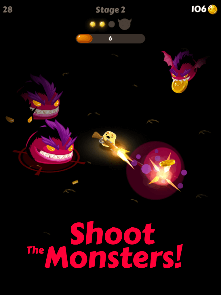 Арена всегда тёмная, чтобы создать жуткую атмосферу для опыта. Каждый уровень будет иметь свой матч. Игроки должны завершить текущий уровень, чтобы перейти к следующему. Поскольку система имеет низкий предел обнаружения, вы не сможете найти далёких монстров. Вам придётся перемещаться по полю боя, чтобы найти и победить противников. Вы получите монету за каждую взятую жизнь. Они накапливаются для экипировки нового оружия. Кроме того, игроки могут улучшить свои навыки для более точного прицеливания. Безобидные сгустки захватят зону битвы, чтобы восстановить свет.