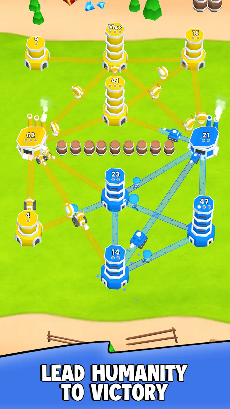 - Постройте свою армию: Вам нужно создать сильную боевую армию, способную победить роботов, угрожающих вторжением. Управляйте своей армией, рисуя прямые линии, ведущие к вашей базе. Это считается способом проложить путь для армии, чтобы сражаться с роботами.