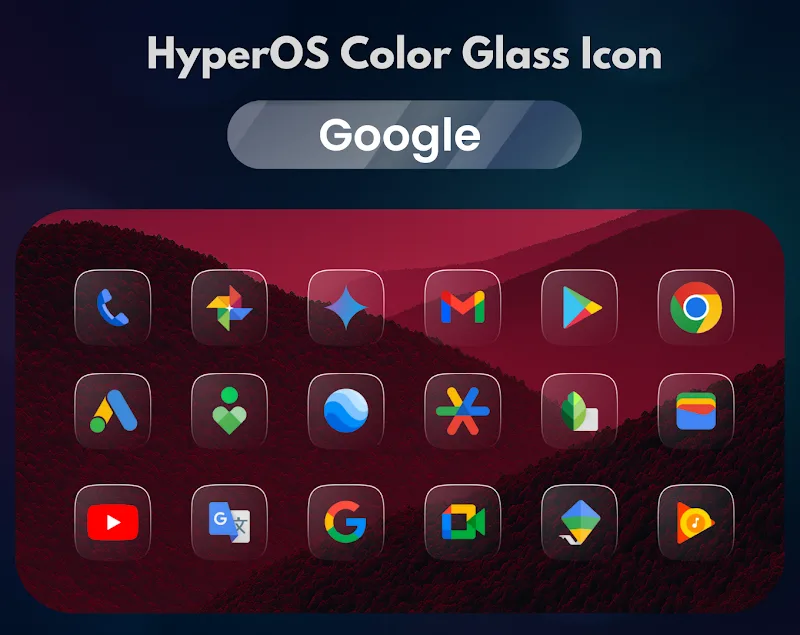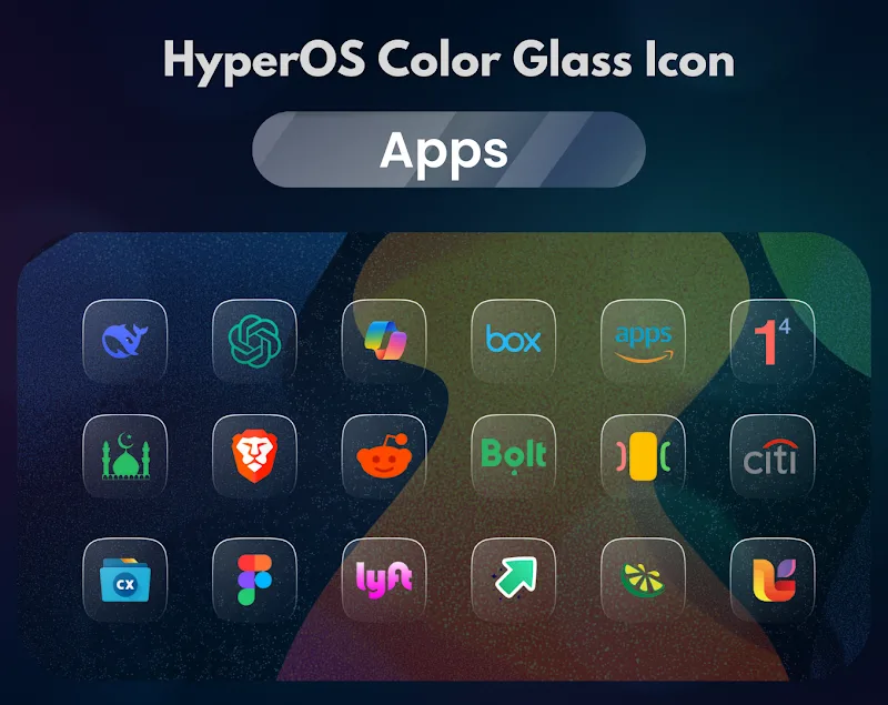Набор иконок разработан во множестве различных стилей. Пользователи могут использовать набор иконок, содержащий уникальные стеклянные эффекты. Мало того, внешний вид в стиле HyperOS также придает набору иконок свой собственный шарм и индивидуальность.