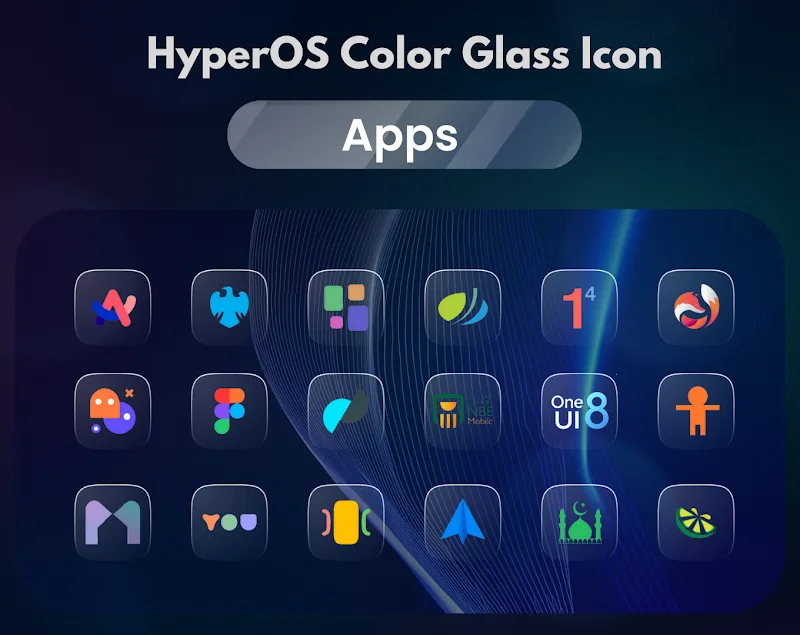 Элегантный стиль HyperOS — это основной стиль набора иконок, выпущенного HyperOS Icons. Это приложение приносит по-настоящему новый опыт всем, кто хочет изменить пользовательский интерфейс. Каждый шаблон иконки покрыт эффектом прозрачного стекла и украшен множеством выдающихся цветовых пятен.