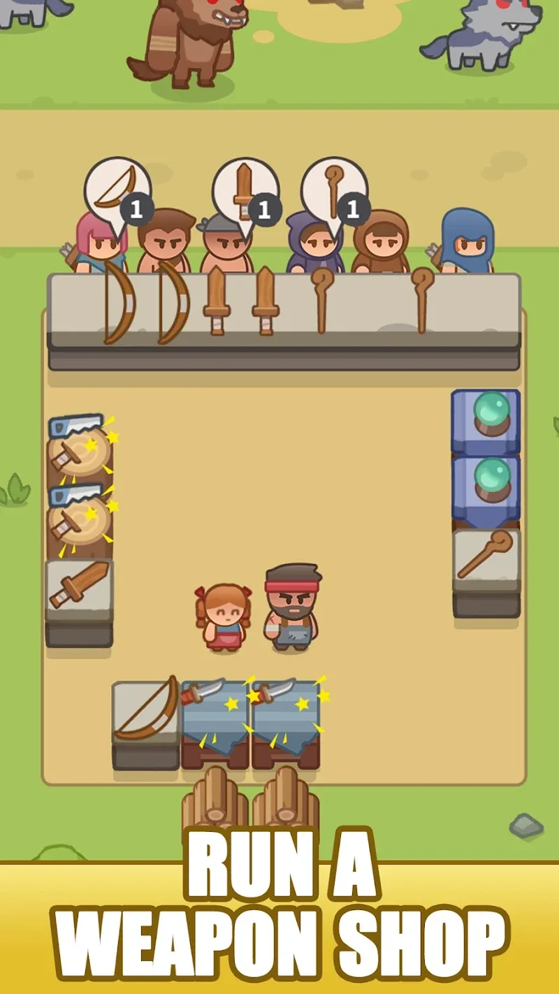 Это факт, что в войнах рыцари важны. Но рыцари потеряют свою значимость, если их оружие недостаточно мощное. То есть кузнецы также играют чрезвычайно важную роль в битве. Поэтому Idle Weapon Shop Tycoon был запущен, чтобы помочь игрокам понять важность логистики в сражении. В этом мире, мире хаоса, всё было разрушено. Монстры ниоткуда начали появляться. Они уничтожают всё. И рыцари начали подниматься, чтобы сражаться против судьбы. Игроки не могут сражаться. Они играют роль владельца оружейной лавки. Именно они будут теми, кто сможет убивать монстров. Подумайте, если вы только вступили в битву, а ваше оружие было повреждено, как вы сможете сражаться?