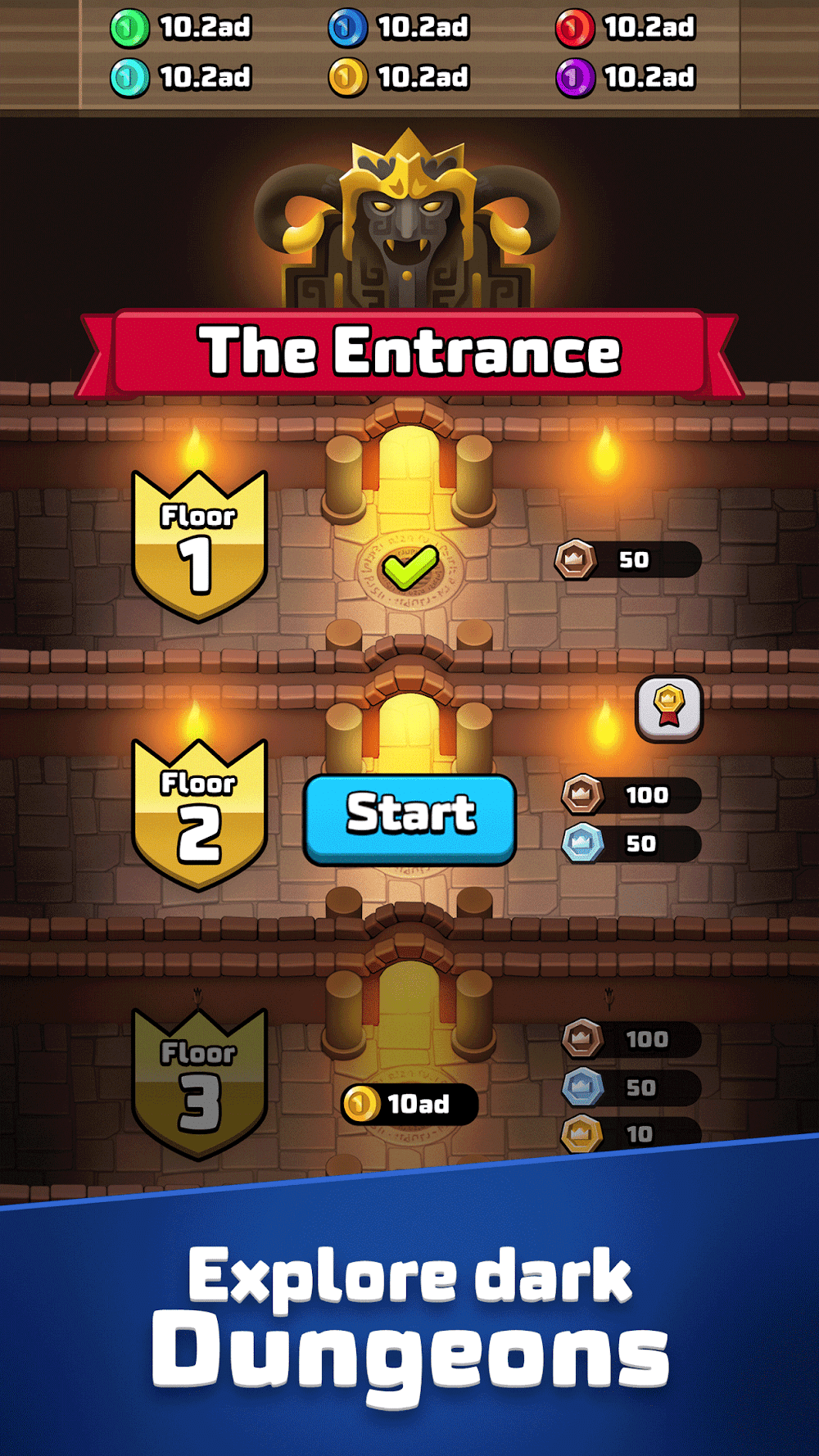 Эта игра также предоставит вам захватывающую карту территорий вашего королевства, которой вы сможете пользоваться в дальнейшем. При проведении атак игроки могут нацеливаться на определённые области карты, чтобы уничтожать врагов и находить ключи к скрытым сундукам с сокровищами. Вы также сможете исследовать таинственные подземелья, населённые множеством монстров, вместе с воинами и другими героями. В этой игре вам предстоит сразиться с самыми разными героями, каждый из которых обладает чрезвычайно превосходной силой и уникальными способностями, которые можно использовать для расправы с противником. Начните завоевание подземелий, чтобы собрать ценные ресурсы.