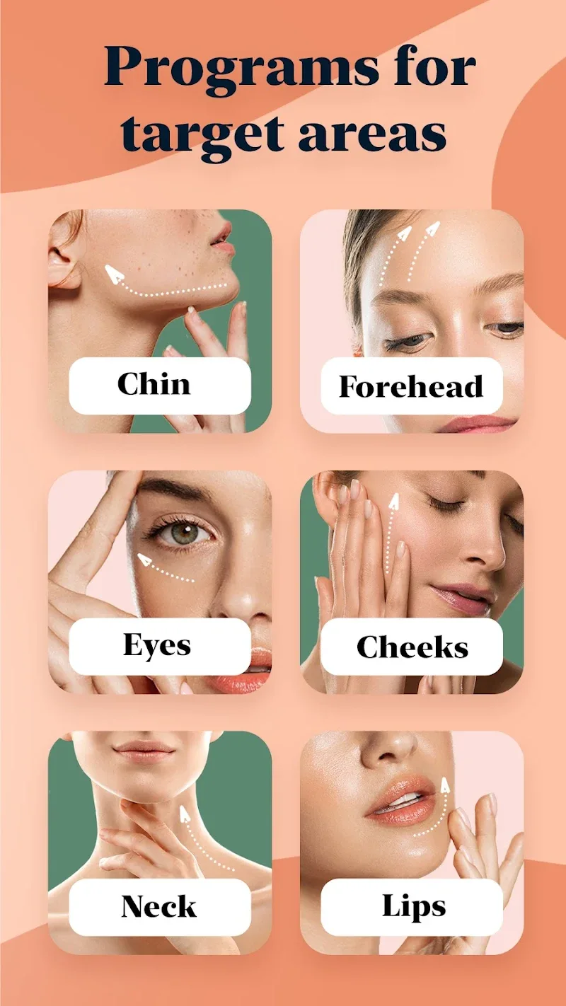 - Проблемные зоны: С этим приложением пользователи получат комплексную проверку лица. Цель — узнать, с какими областями у вас есть проблемы, и подобрать соответствующие упражнения. Целевые упражнения помогут вам улучшить именно то, что нужно улучшить на вашем лице.