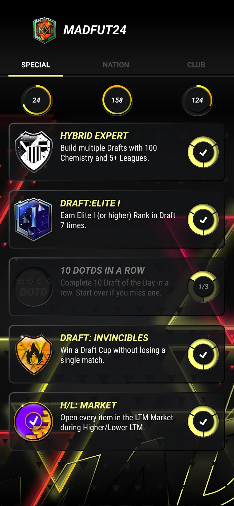 Совершенно новый MADFUT 24 уже здесь с большим количеством контента, новыми режимами и серьёзными улучшениями во всём приложении! Среди ключевых нововведений — новые ранги в Draft для получения наград, ограниченные по времени режимы и карты, уникальные специальные значки, прошедшие «Черновики дня», настройка рейтингов LTM-карт, онлайн-кубки Draft, сортировка по фатальным характеристикам, переход к результатам фатальных матчей, улучшенное создание SBC, особая отметка за 100% коллекцию, а также новые наборы, выбор игроков и выбор токенов. Мы с нетерпением ждём возможности представить в этом сезоне больше, чем когда-либо!