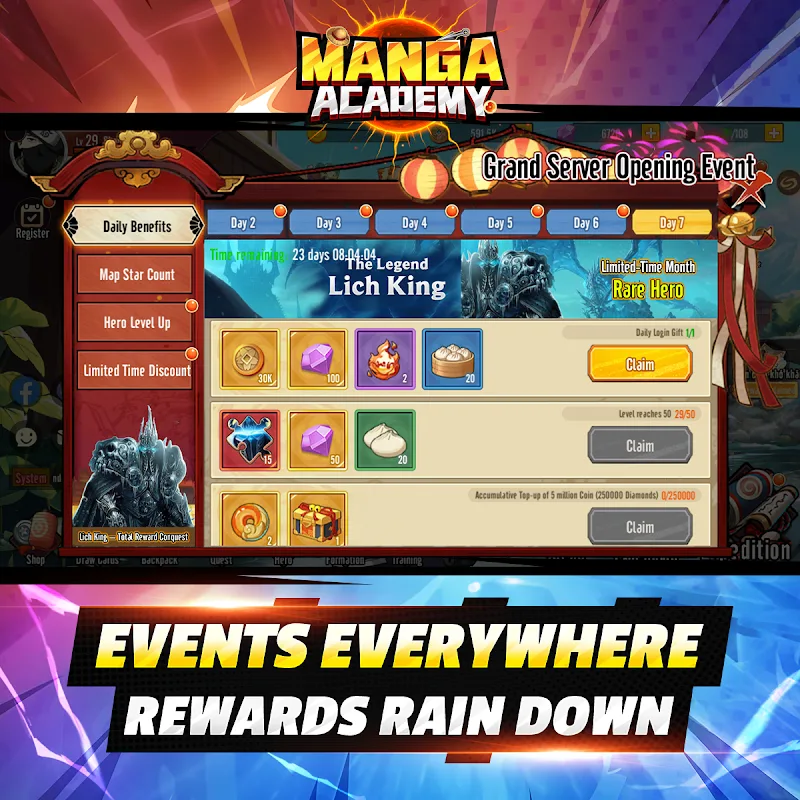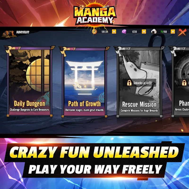 Легенды из манги соберутся в Manga Academy: Multiverse War и организуют классическую кампанию. Они будут сражаться вместе, чтобы найти сильнейшую команду во вселенной. Множество воинов с уникальными навыками будут призваны и использованы на арене.