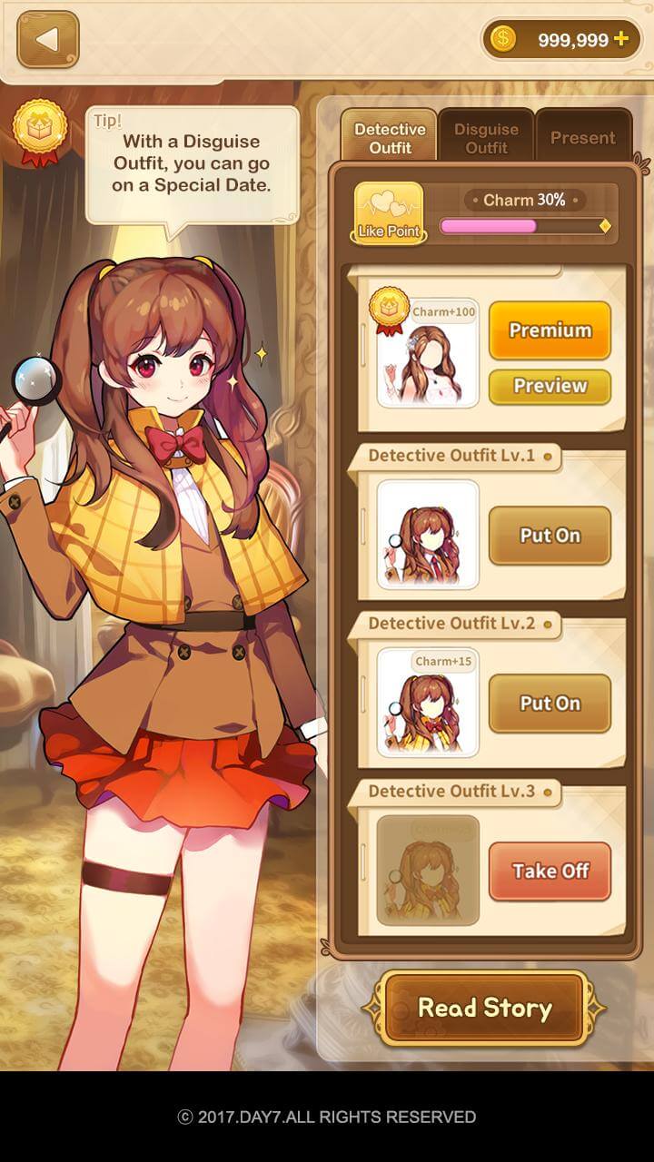 Достаточно ли привлекателен для вас Джереми? Он слабый парень с пылким и искренним сердцем эльфа. Игрокам стоит сотрудничать с Miss Detective’s Undercover, чтобы создавать для него сценарии испытаний. Вам стоит показать парням, что вы страстная девушка, жаждущая любви. Шон — парень, который всегда скрывается в темноте и двигается подозрительно. Вы должны проследить за ним, чтобы определить, является ли он преступником. Когда вы присоединяетесь к детективной миссии, вам нужно путешествовать вокруг, чтобы найти важные элементы, но вы должны вкладывать больше денег в цепочки испытаний, чтобы мы могли помочь вам. Все любовные решения зависят от вас, так что не бойтесь проявлять свою индивидуальность и завоёвывать сердце любимого парня.