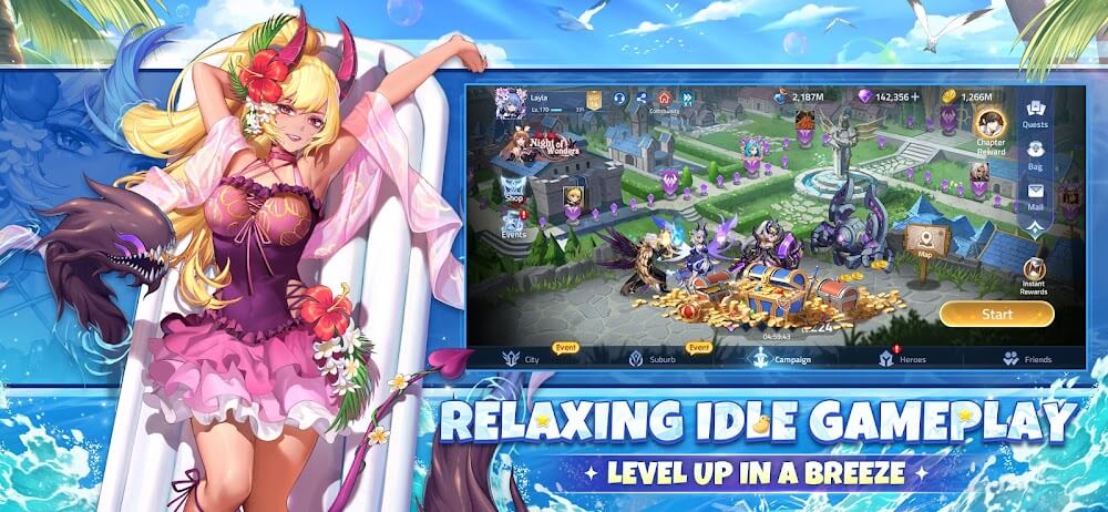 Умный механизм работы игры позволяет вашей армии получать и накапливать бонусные ресурсы даже когда вы не в сети. Более конкретно, вы можете накапливать все виды преимуществ во время отдыха или даже выключив приложение и телефон, все равно пожинать награды.