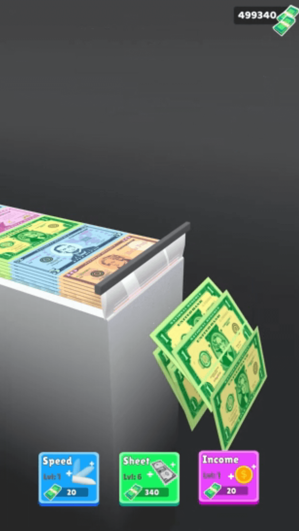 - Визуальный денежный поток: Вам просто нужно настроить принтер для печати желаемой суммы денег, а также стоимости каждой необходимой купюры. С этого момента вам придётся ценить моменты, когда машина выдаёт деньги, и создавать для себя разницу.
