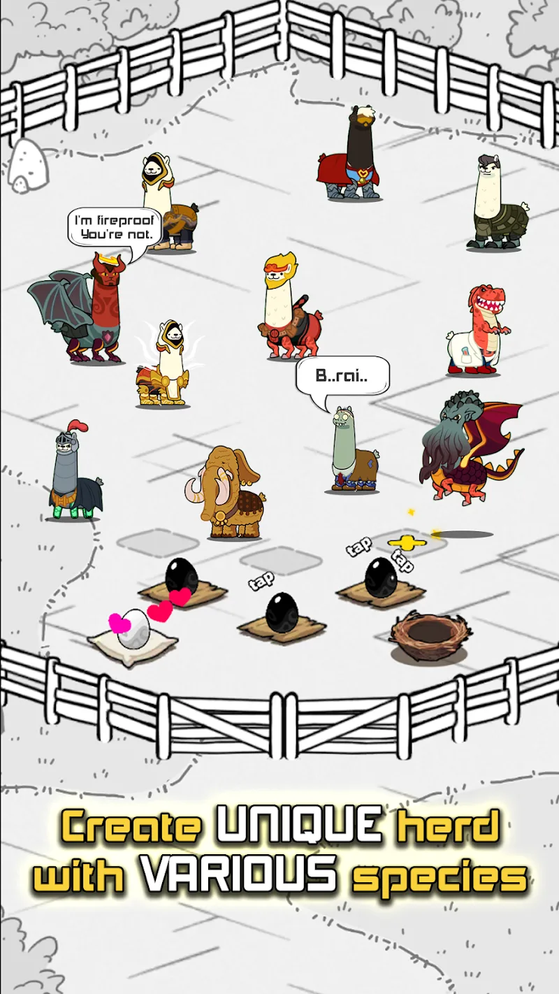 Вы когда-нибудь видели верблюда без горба? Это животное становится популярным благодаря своему чувству юмора и обаятельной манере поведения. И если вы тоже особый поклонник этого животного, то Mutant Llama: IDLE Hatch Game станет игрой, которую нельзя пропустить для вашей коллекции. Стадо лам — это команда супергероев.