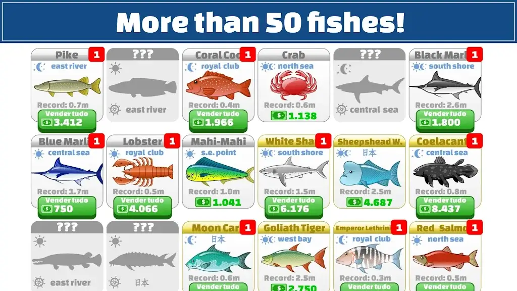 - Разнообразная водная жизнь: Океан всегда был известен как среда обитания бесчисленных морских существ. Здесь вы откроете для себя 65 различных видов морских обитателей. У них будут свои особенности, и они также станут объектами для ваших рыболовных сессий.