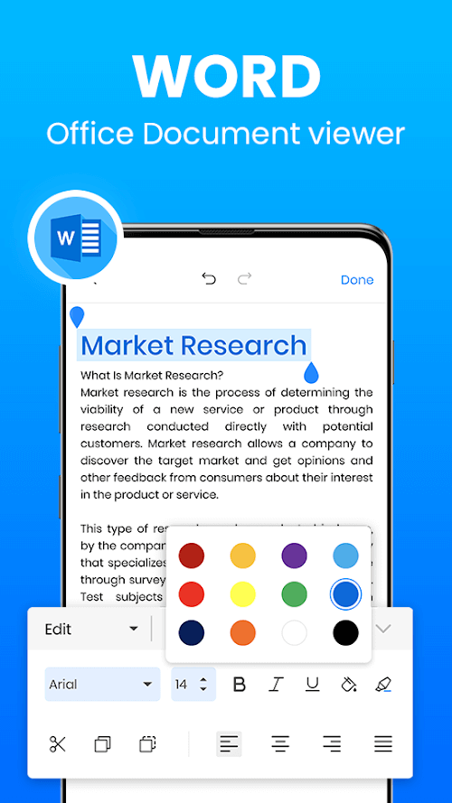 Word Office предоставляет мощный офлайн-редактор. Все типы документов будут полностью поддерживаться и обладать богатым функционалом. Эта функция подходит для большинства занятых офисных работников и требует приложения, которое мгновенно поддерживает название вашего Android-устройства. Вы можете создавать, связывать и редактировать документы совместно со многими другими пользователями при помощи простого подключения телефона. Вся работа будет выполнена, чтобы помочь вам справиться с любой неожиданной задачей в любом месте и в любое время. Черновики будут поддерживаться для быстрого обмена, отправки и ответов, если пользователи свяжут их со своими учётными записями Gmail. Кроме того, документы Docx будут связаны и преобразованы в PDF-файлы прямо в приложении.