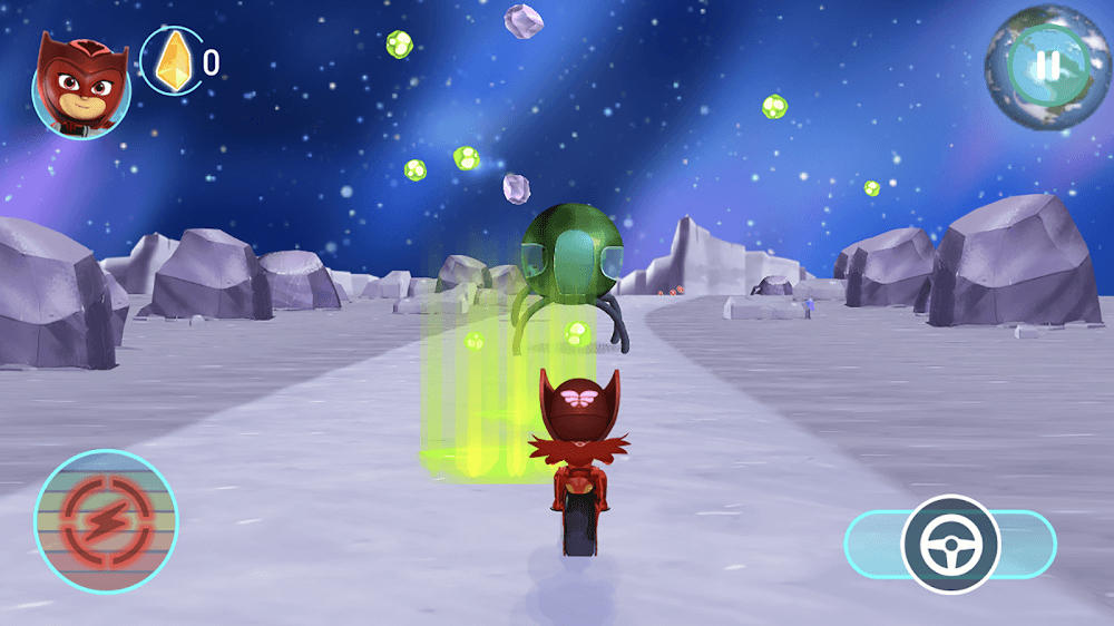PJ Masks™ станет игрой, которая подарит своим игрокам захватывающий опыт на трассах вместе с супергероями. Если вы любите игры, выполненные в раннер-стиле, это будет новым выбором, но принесёт высокий уровень зависимости игрокам. В этой игре игроки будут вовлечены в напряжённую битву на трассе между супергероями и их противниками. Игрокам, которые пришли в игру впервые, не нужно беспокоиться об изучении правил и адаптации, потому что система управления очень проста. Внутри игры вам нужно будет управлять героем на трассе всего с помощью двух простых кнопок, правой панели навигации и активировать особые способности с помощью кнопки функции в левом углу.