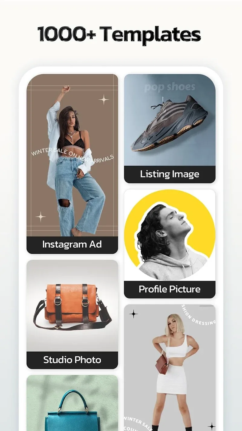 - Мокапы товаров: Приложение также позволяет пользователям обращаться к образцам фотографий для интернет-магазинов и использовать их.